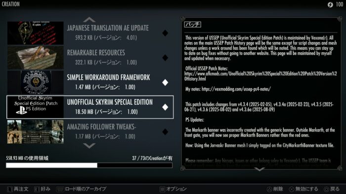 Skyrimアップデート、MODとCreation Clubのメニュー統合