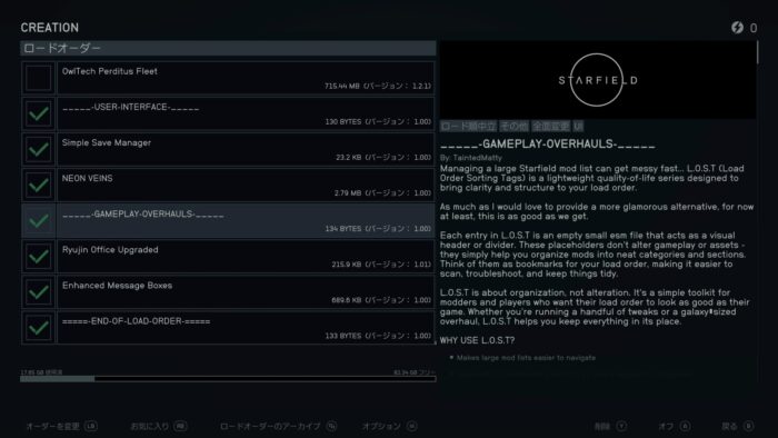 ロード順の好きな場所に配置してMODを管理しやすくする