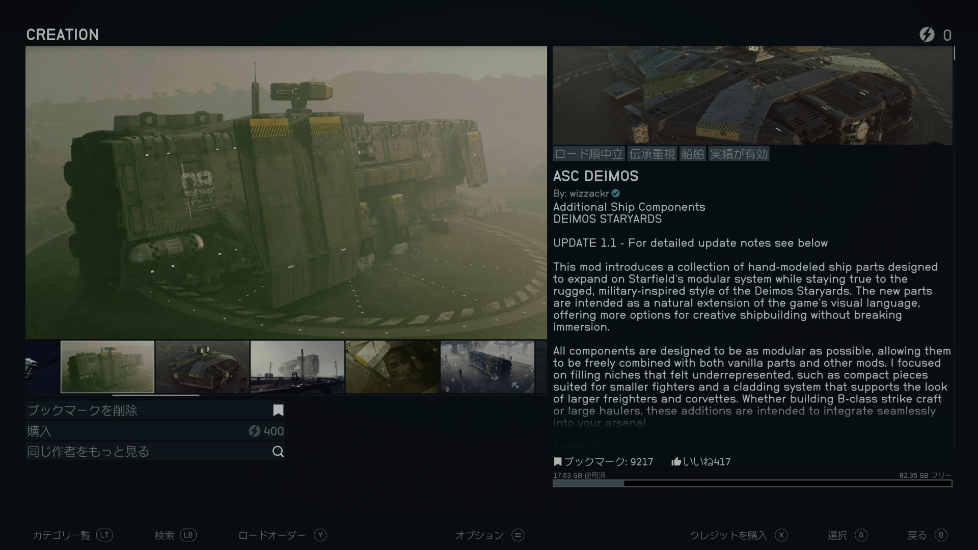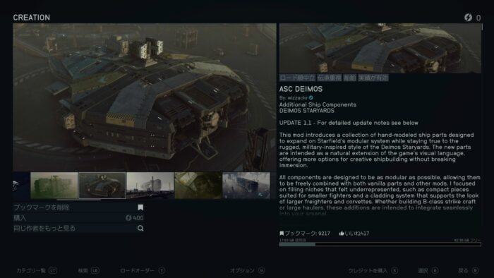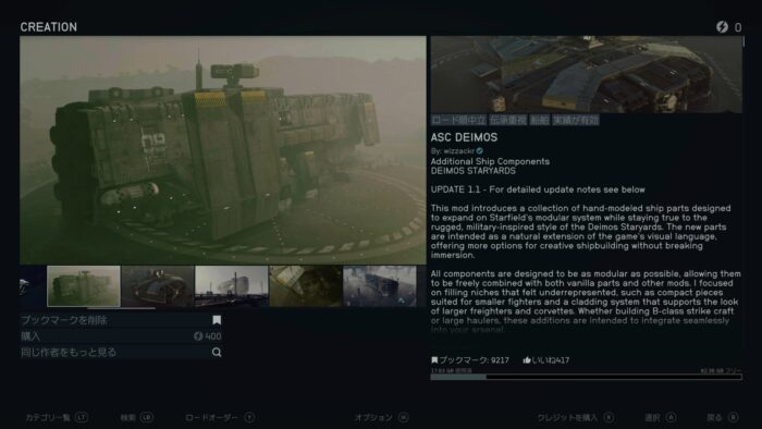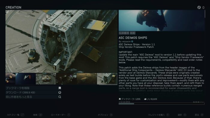 このパーツを使った宇宙船(MODページの画像の船)をダイモス・スターヤードで販売