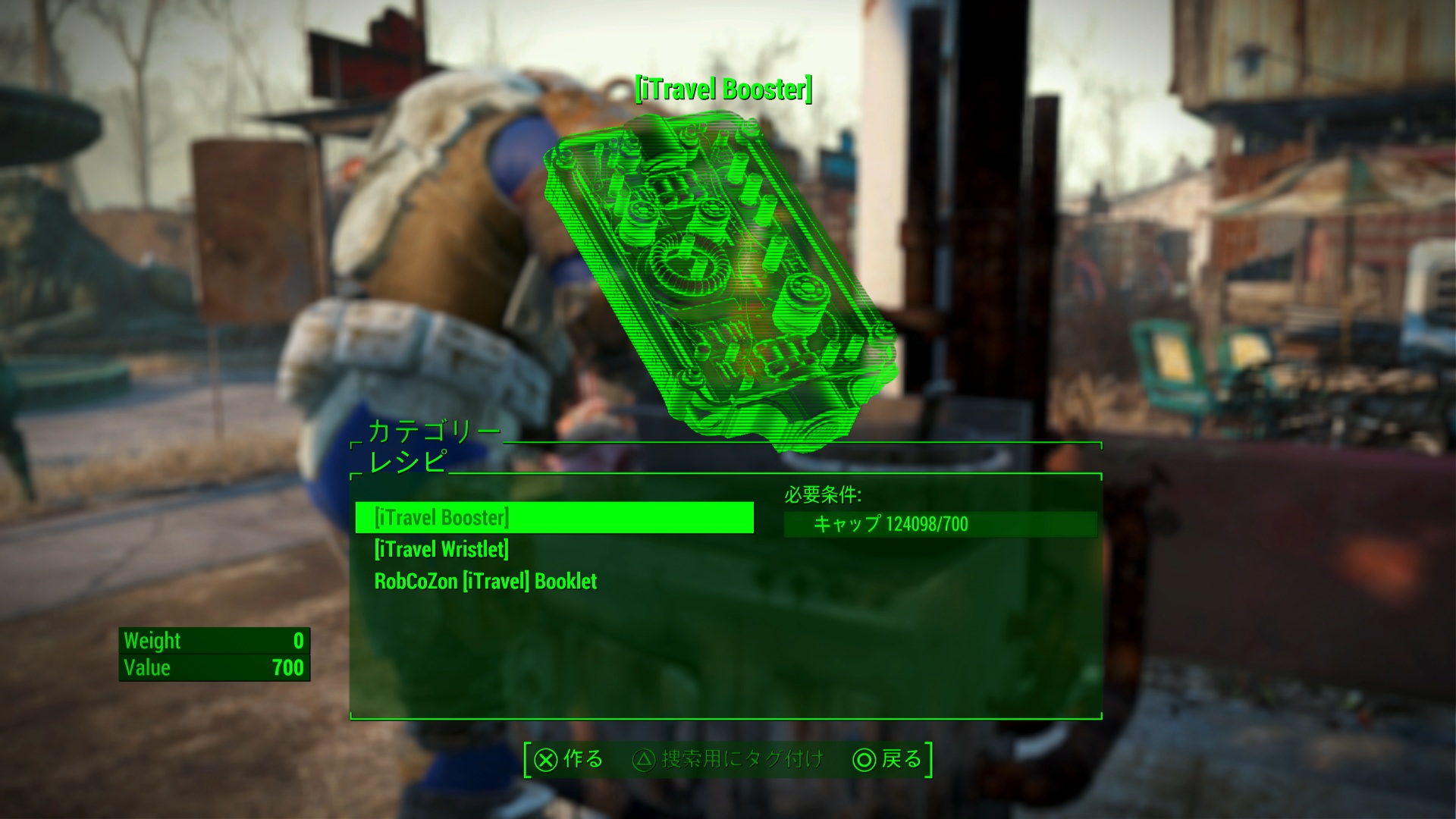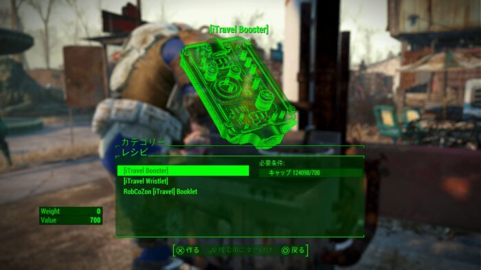 ジャンクアイテムの重量0、解体すると5倍の資源が手に入る