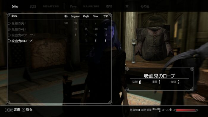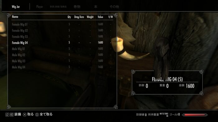 やはり画像の装備は他MOD使用しているみたい。持っている装備は普通のものでした。残念…。