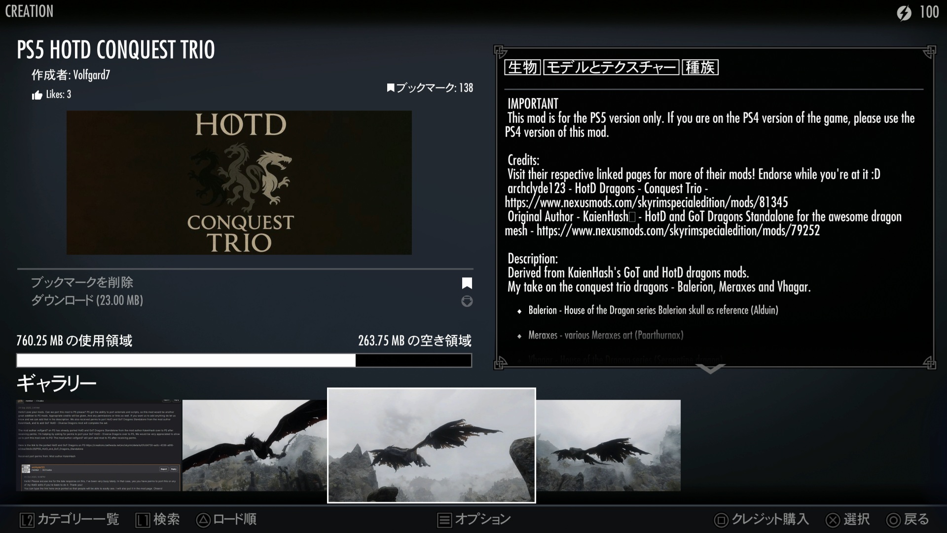 PS5 GoT HotD - Diverse Dragons (Vanilla)