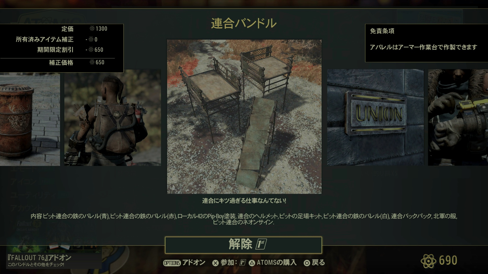 Fallout 1st限定セール:連合バンドル:650(50%オフ)