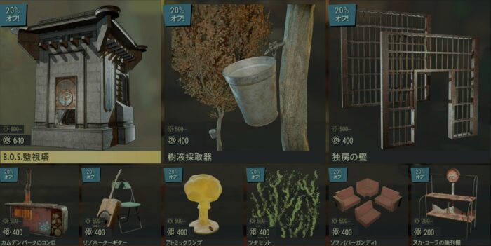 • 23日:Vault-Tecタープテント:250(50%オフ)