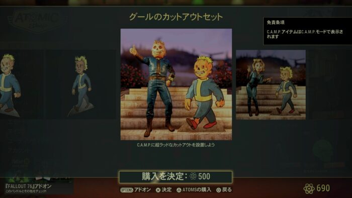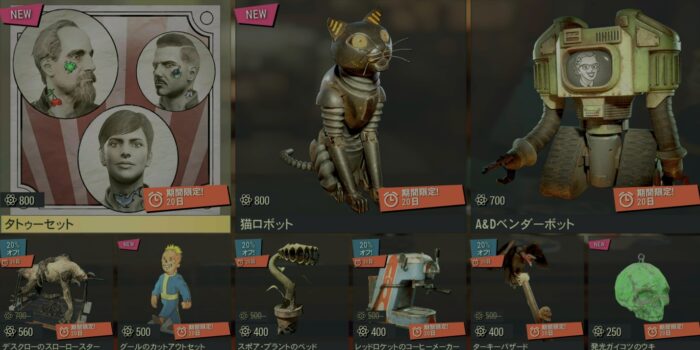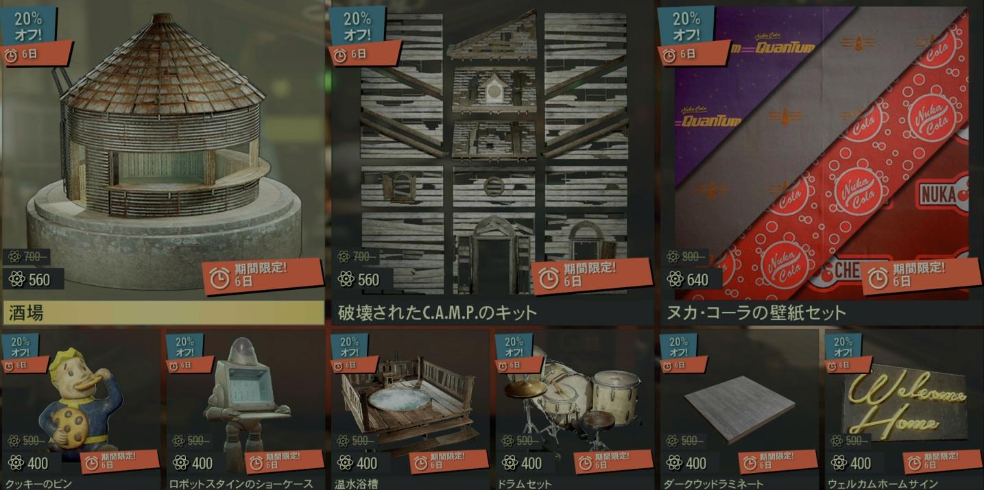 - 23日:Vault-Tecタープテント:250(50%オフ)