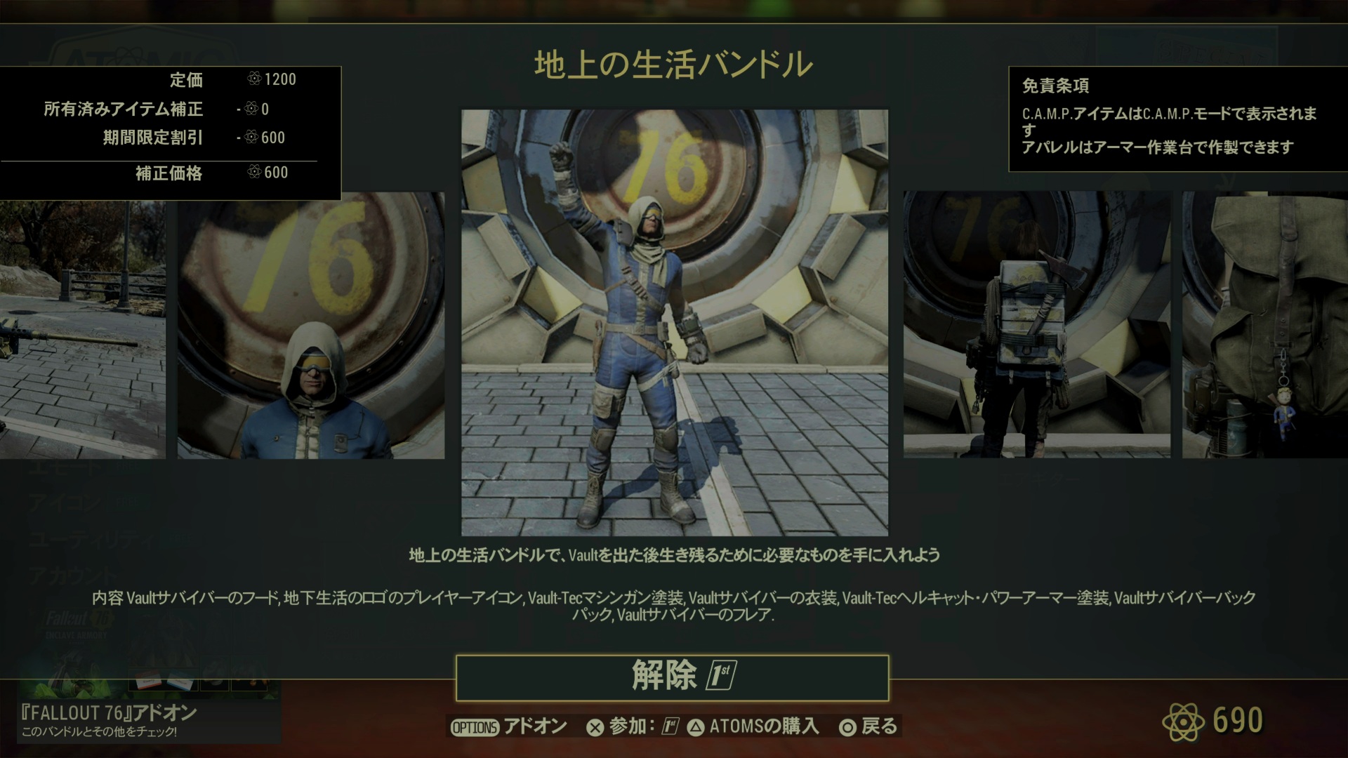 Fallout 1st限定セール:地上の生活バンドル:600(50%オフ)