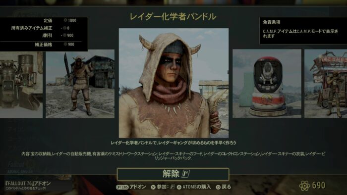 Fallout 1st限定セール:レイダー科学者バンドル:900(50%オフ)