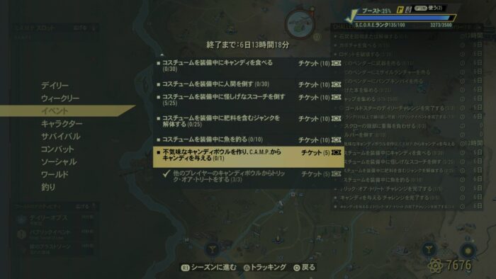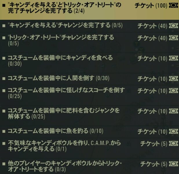 怪しげなスコーチが各地に登場するいつものアレ。他のプレイヤーのキャンプに行ってキャンディ貰ういつものアレ。