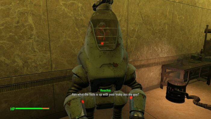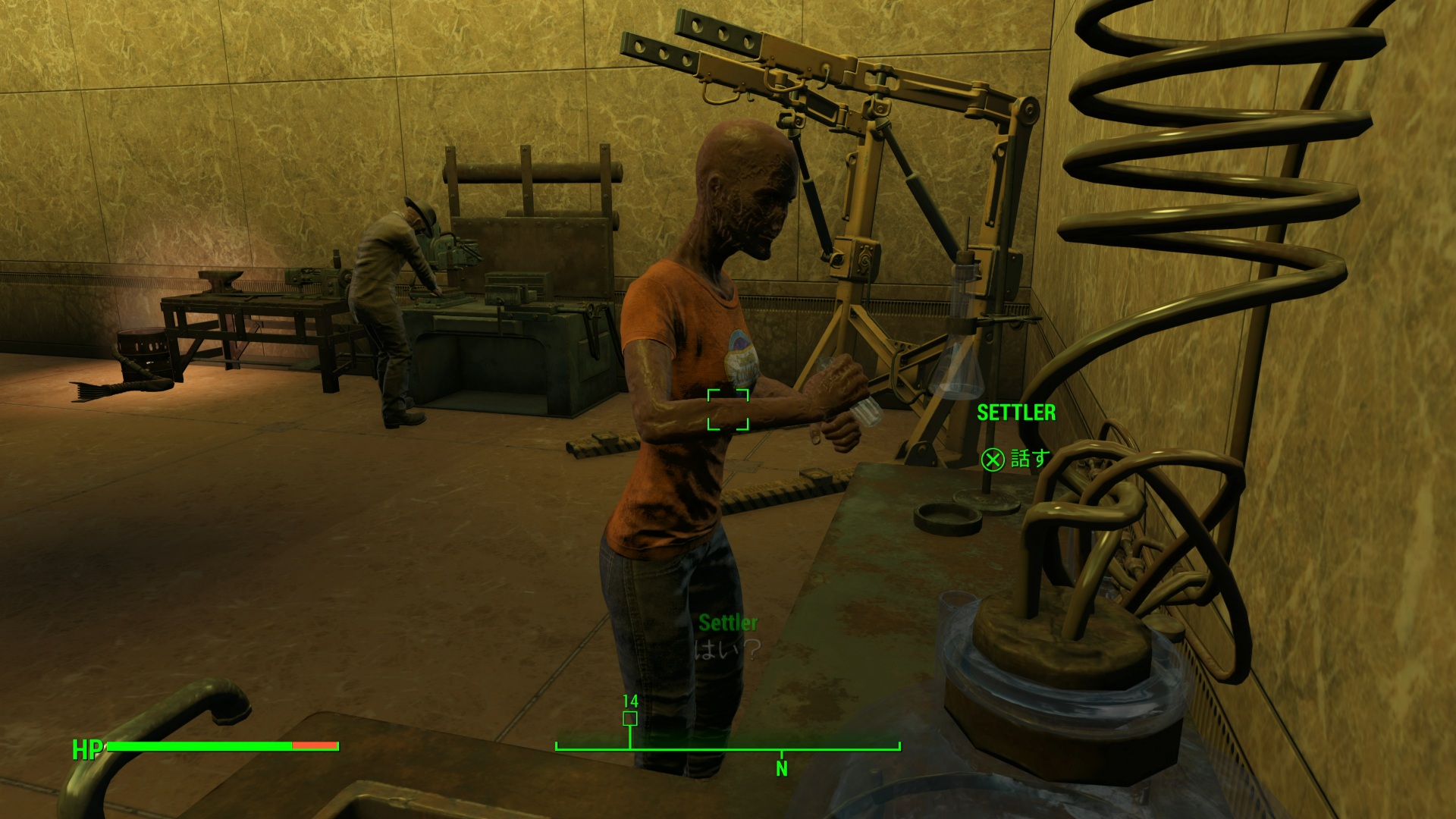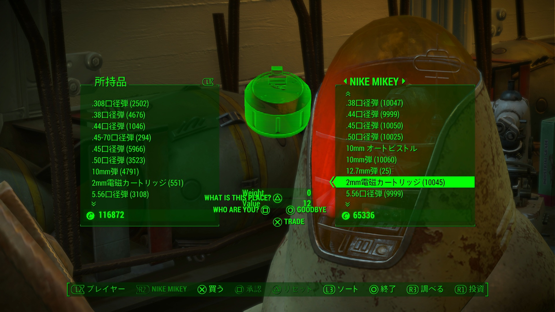 近くのロボットが英語字幕だったので、これがカスタムボイスの商人じゃないかな?