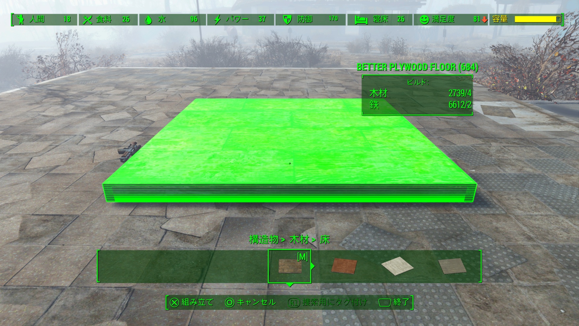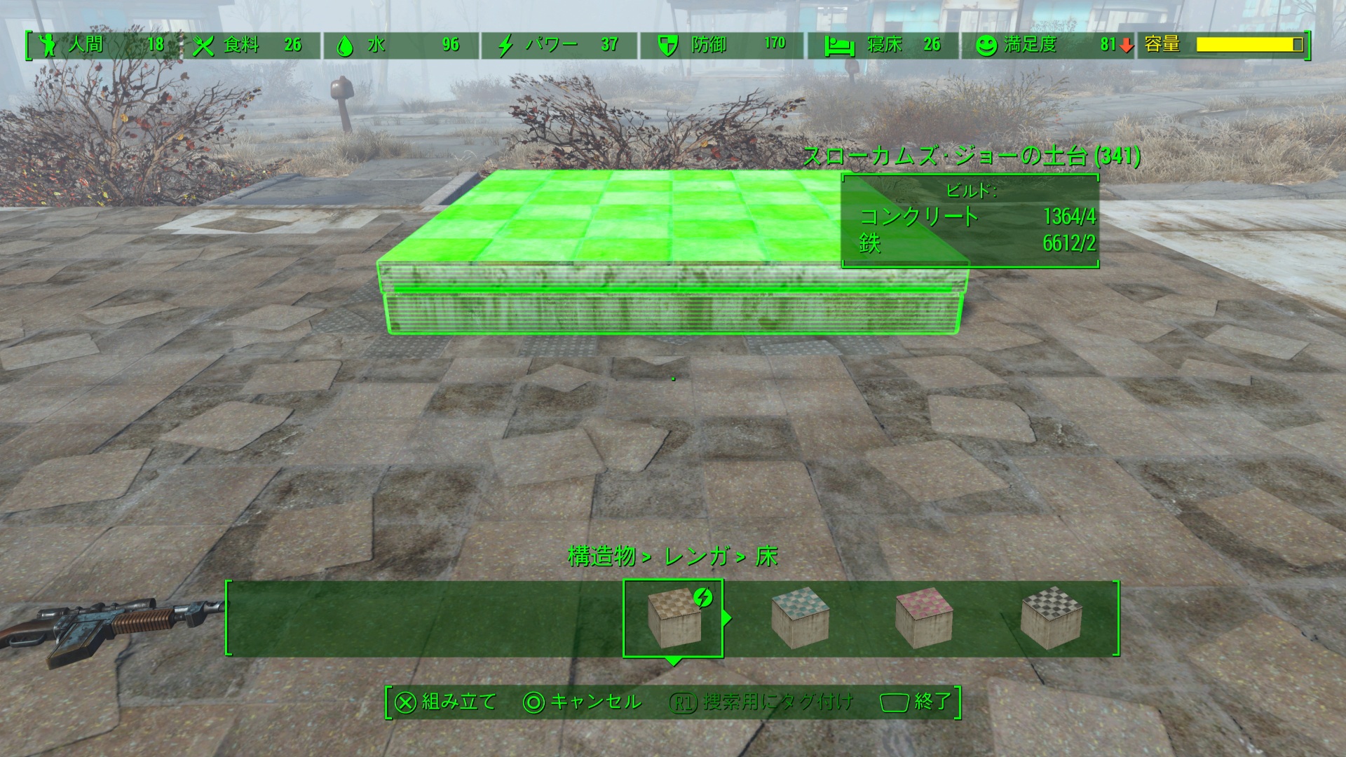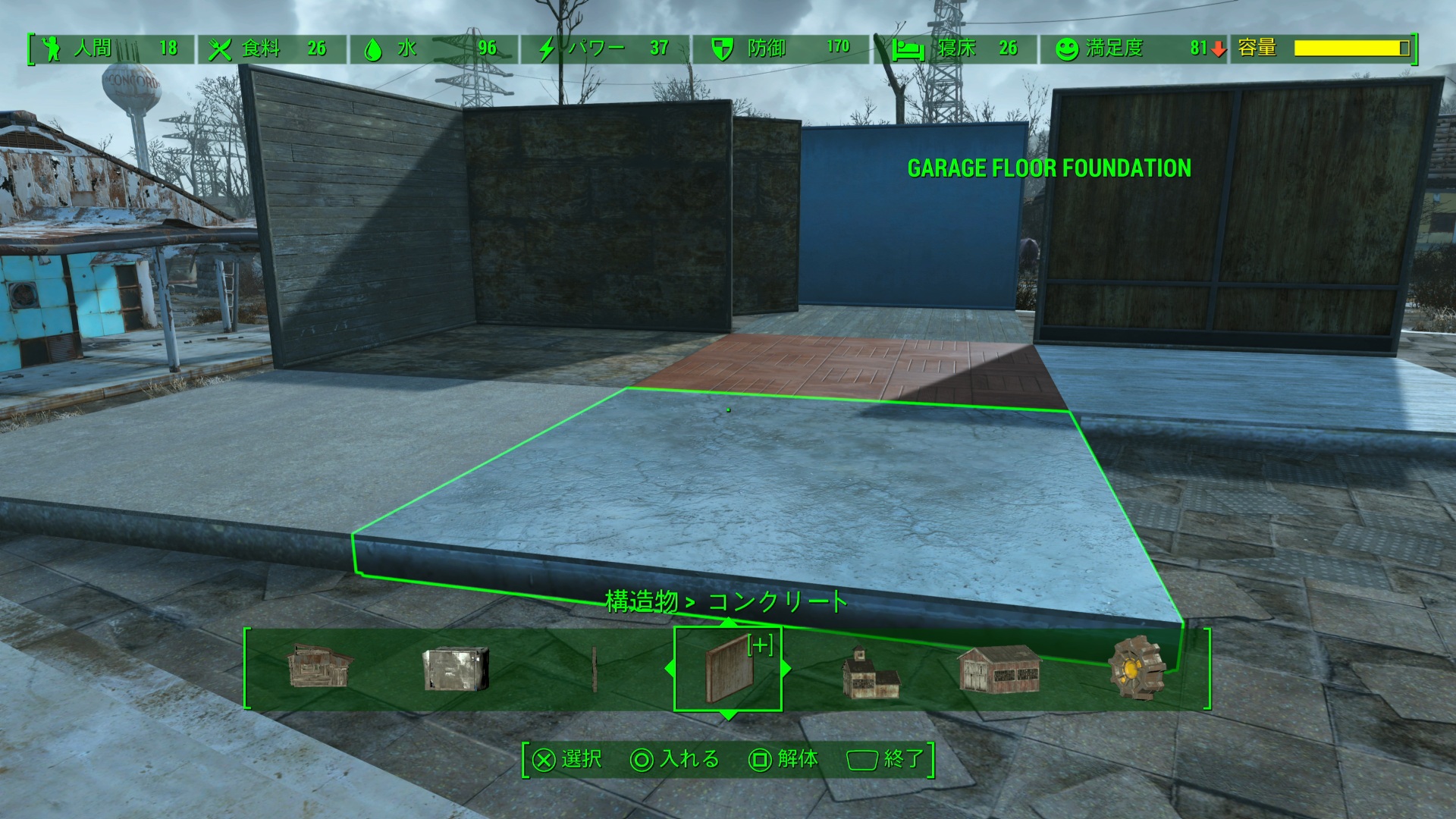 コンクリートの床と壁をカスタマイズしたものに変更