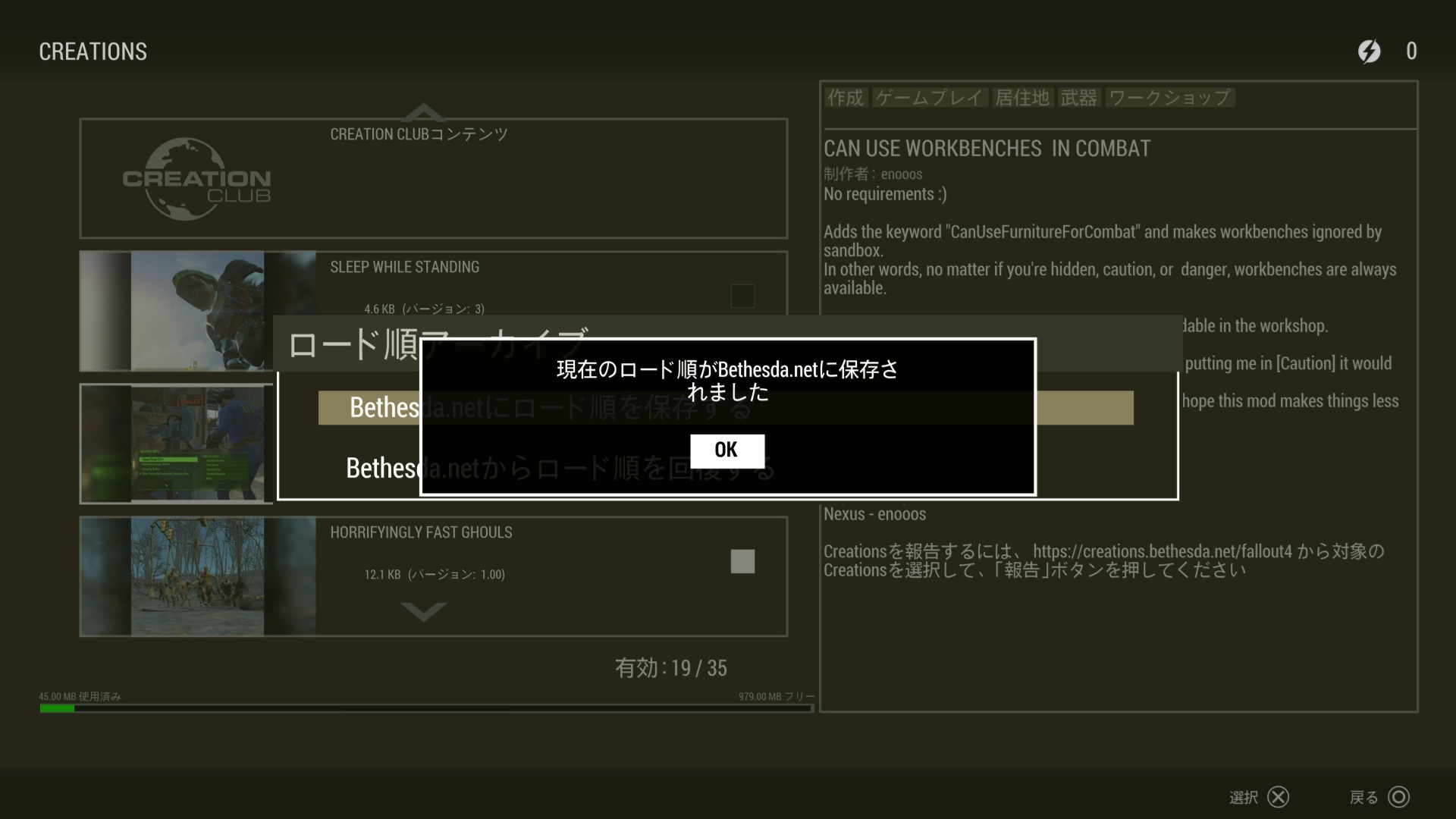 最後にもう一つテスト。Creationのオプション「ロード順の保存」がちゃんと保存されました!