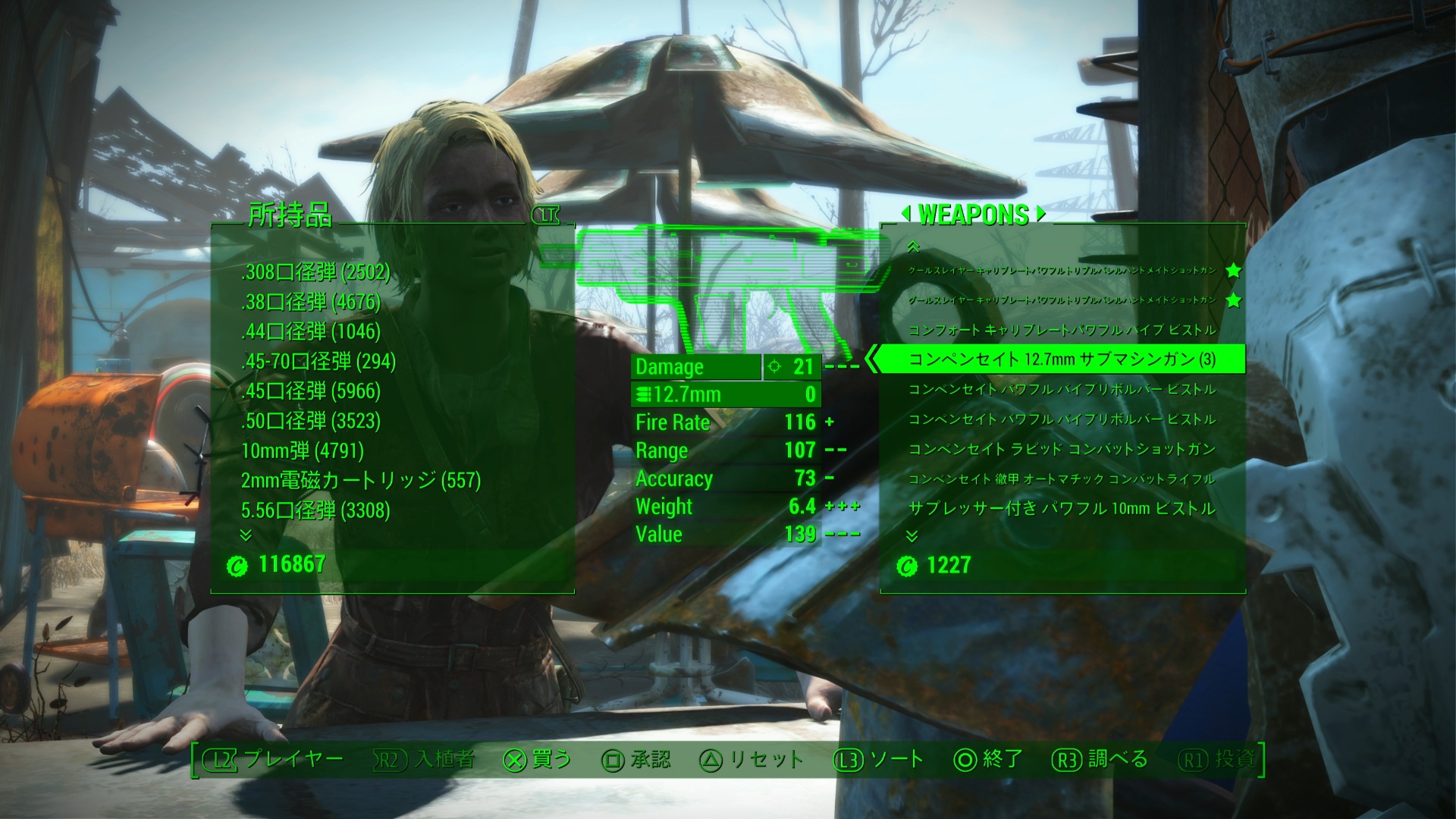 シースカベンジャーの強化、12.7mmサブマシンガンを使用(他のNPCも使用)など