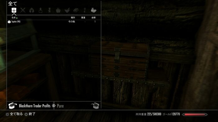 金額/重量(金額ソートを3回やる)便利!拾うアイテムの指標になる。いちいち押すのはめんどうだけど…。