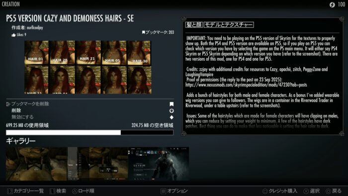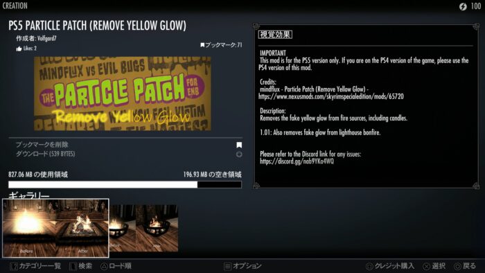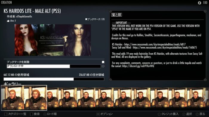 PS4だけ必要なCreationの欄に「SkyUI」が書いてある
