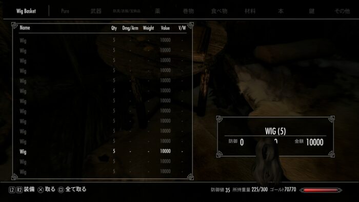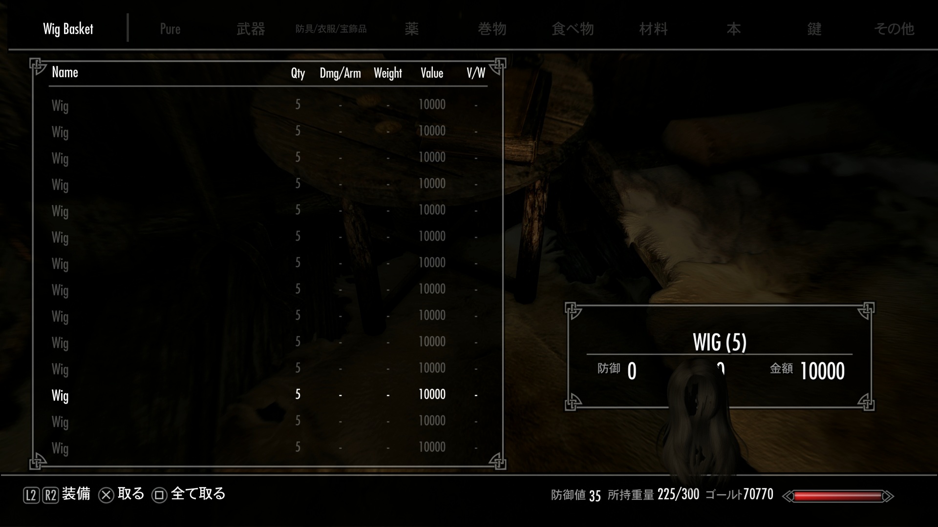 ウィッグはトレーダー2階のベッド横テーブルの下。