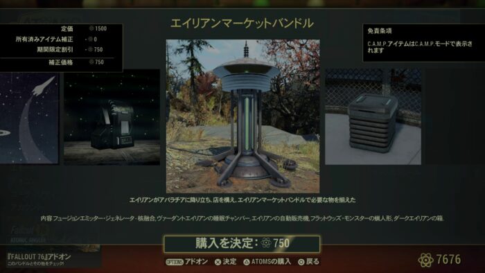 Fallout 1st限定セール:エイリアンマーケットバンドル:750(50%オフ)