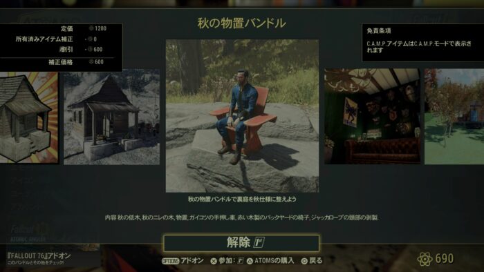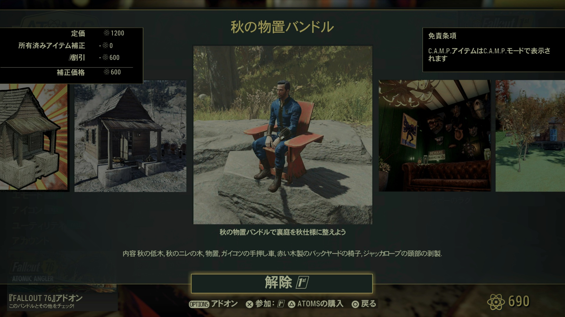 Fallout 1st限定セール:秋の物置バンドル:600(50%オフ)