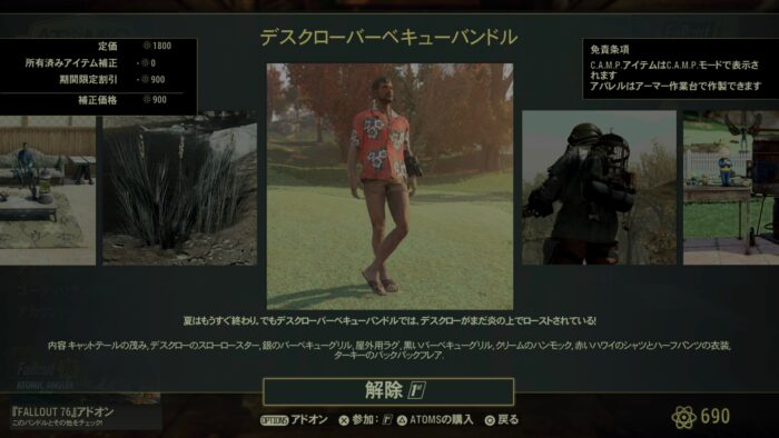 Fallout 1st限定セール:デスクローバーベキューバンドル:900(50%オフ)