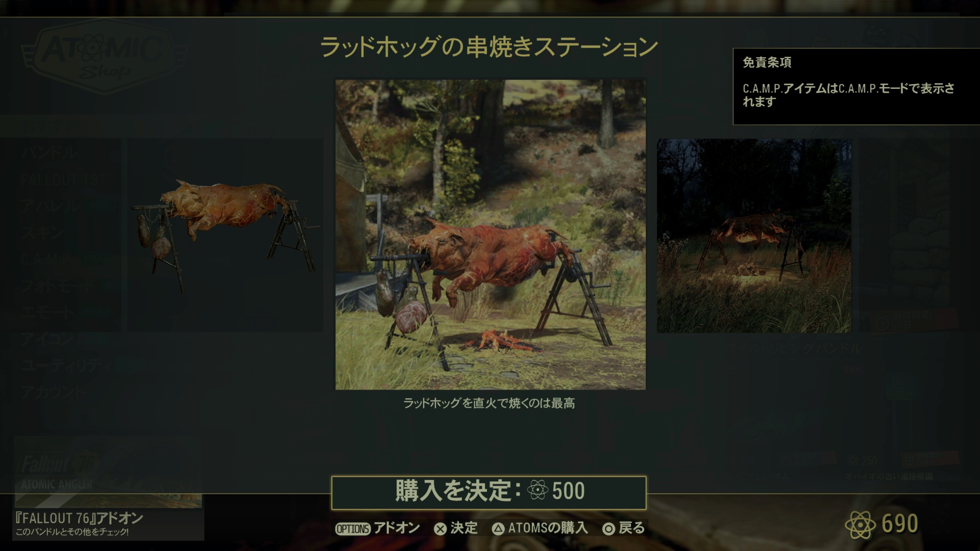 アパラチアには存在しないが焼こう!ガソリンスタンドで焼き豚!さぁ、課金だ!