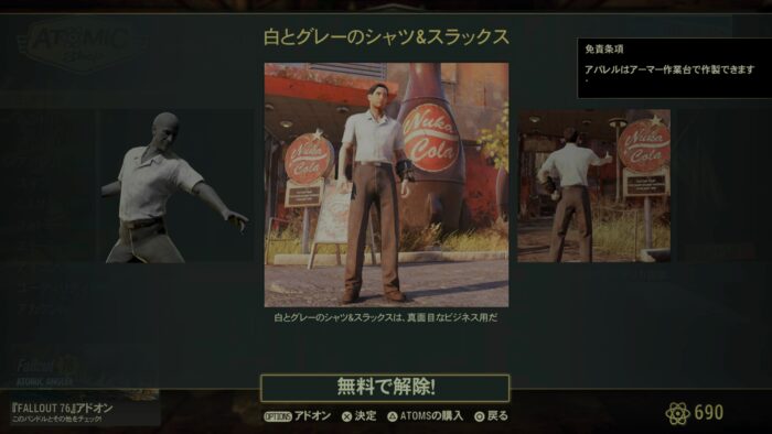 無料アイテム:シャツ&スラックス