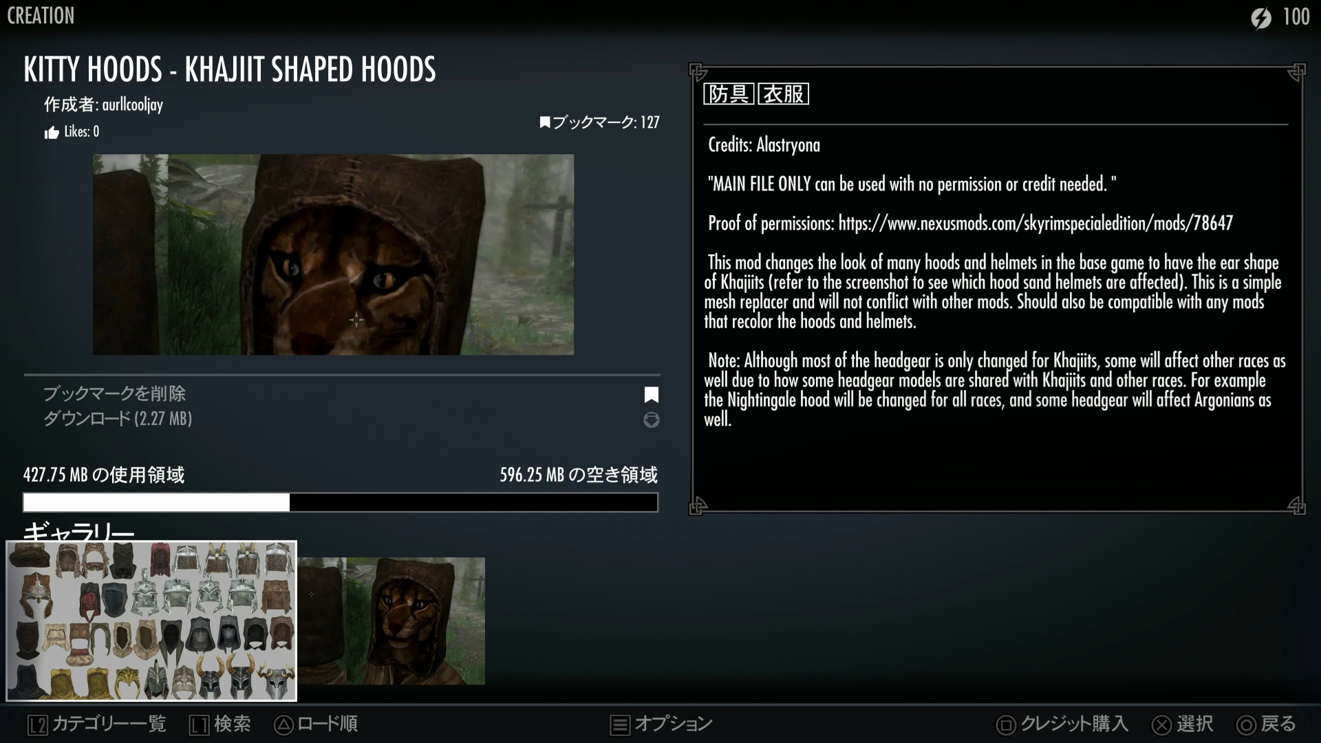 フードや兜をカジート用の耳の形が付いたものに置き換える