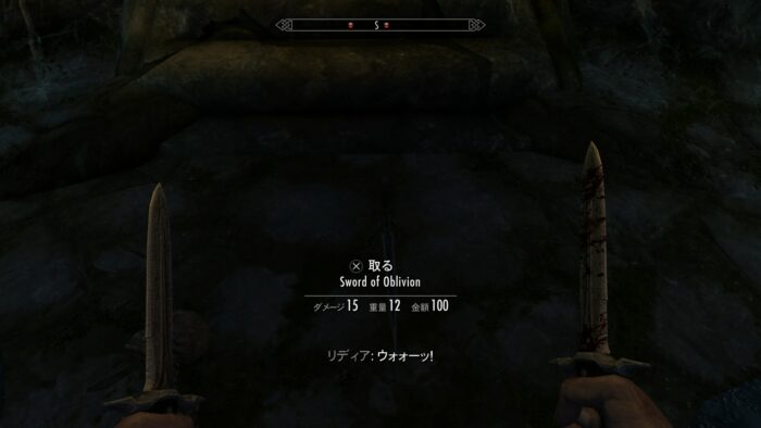 入ってすぐ地面に落ちている。近くの死体はメモを持っている。この剣がここにある経緯が書いてあるのかも?