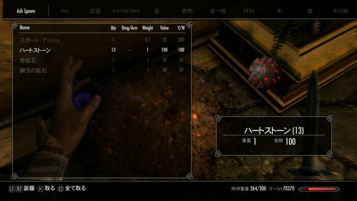 あとはハートストーン集め。近くに鉱床があるが、ストーン持ちのアッシュスポーンが2体いるので倒したほうが速いかも。