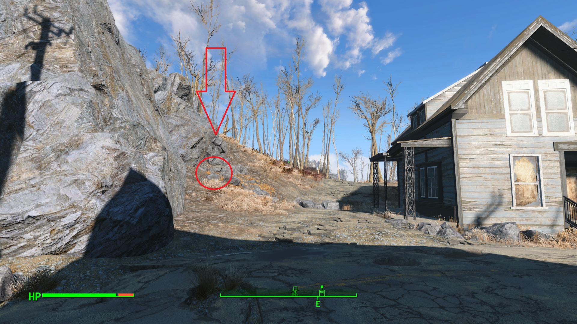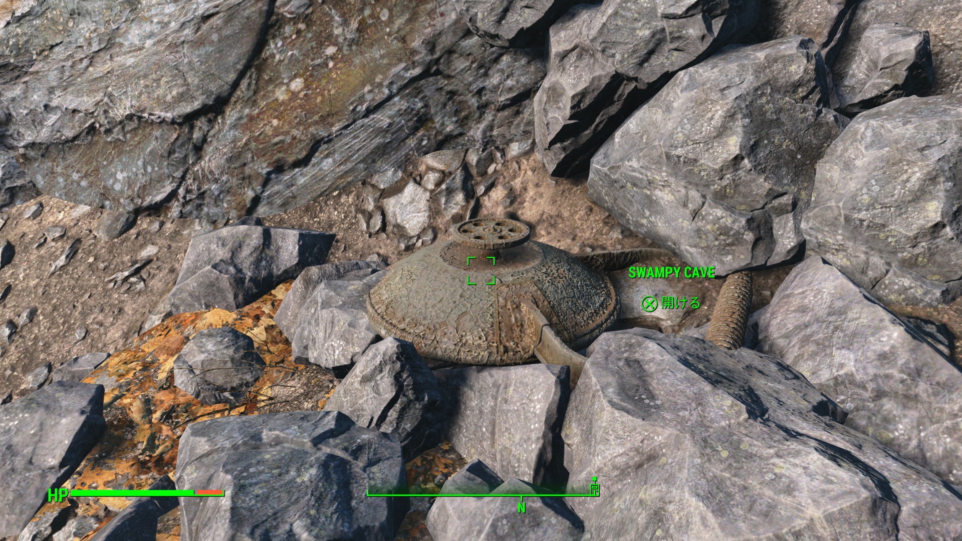 コンコードにファストトラベルして、東の道を進んでちょうどカーブの岩山に入り口がある。
