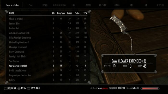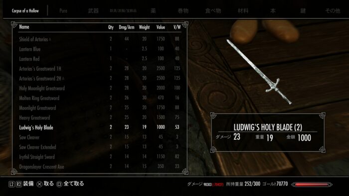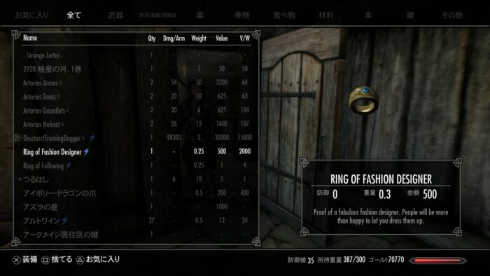 ただ、個人的に残念なのは、チートMODの総重量を増やす指輪と被ってしまいどちらかしか装備できないことか…。