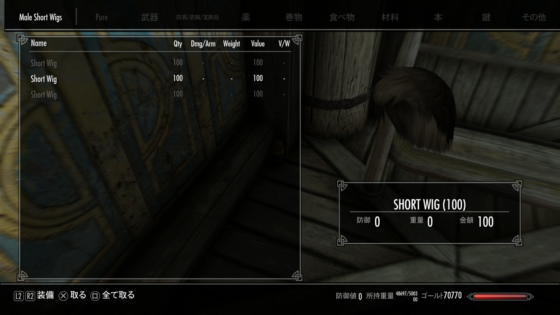 ウィッグは広間の左奥の隅っこにあった。
