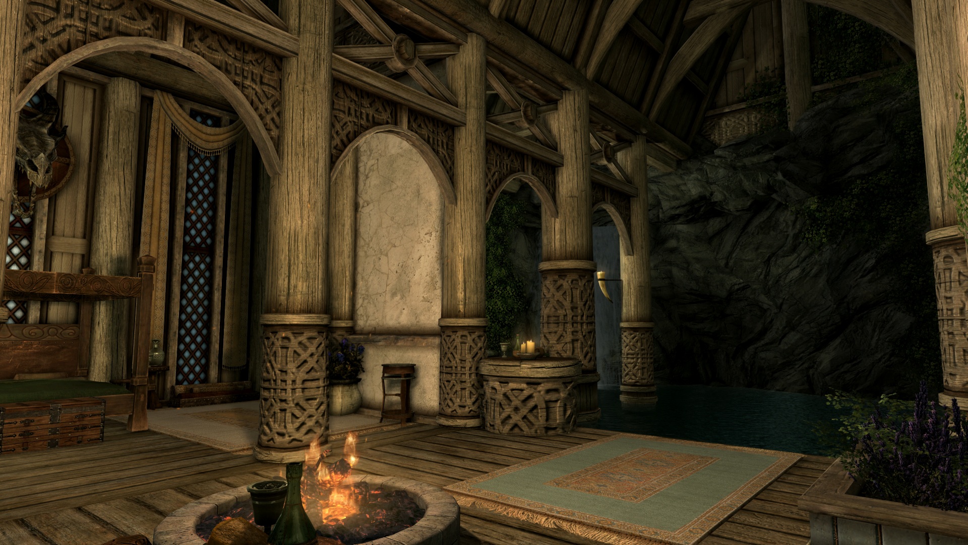 プレイヤーの寝室には滝がある。