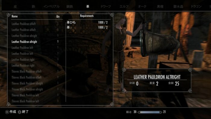 ニューゲームの鍛造術無しキャラだったので、鉄・鋼鉄・革しかなかった。もしかするとスキル有りなら他の材質あるかも?