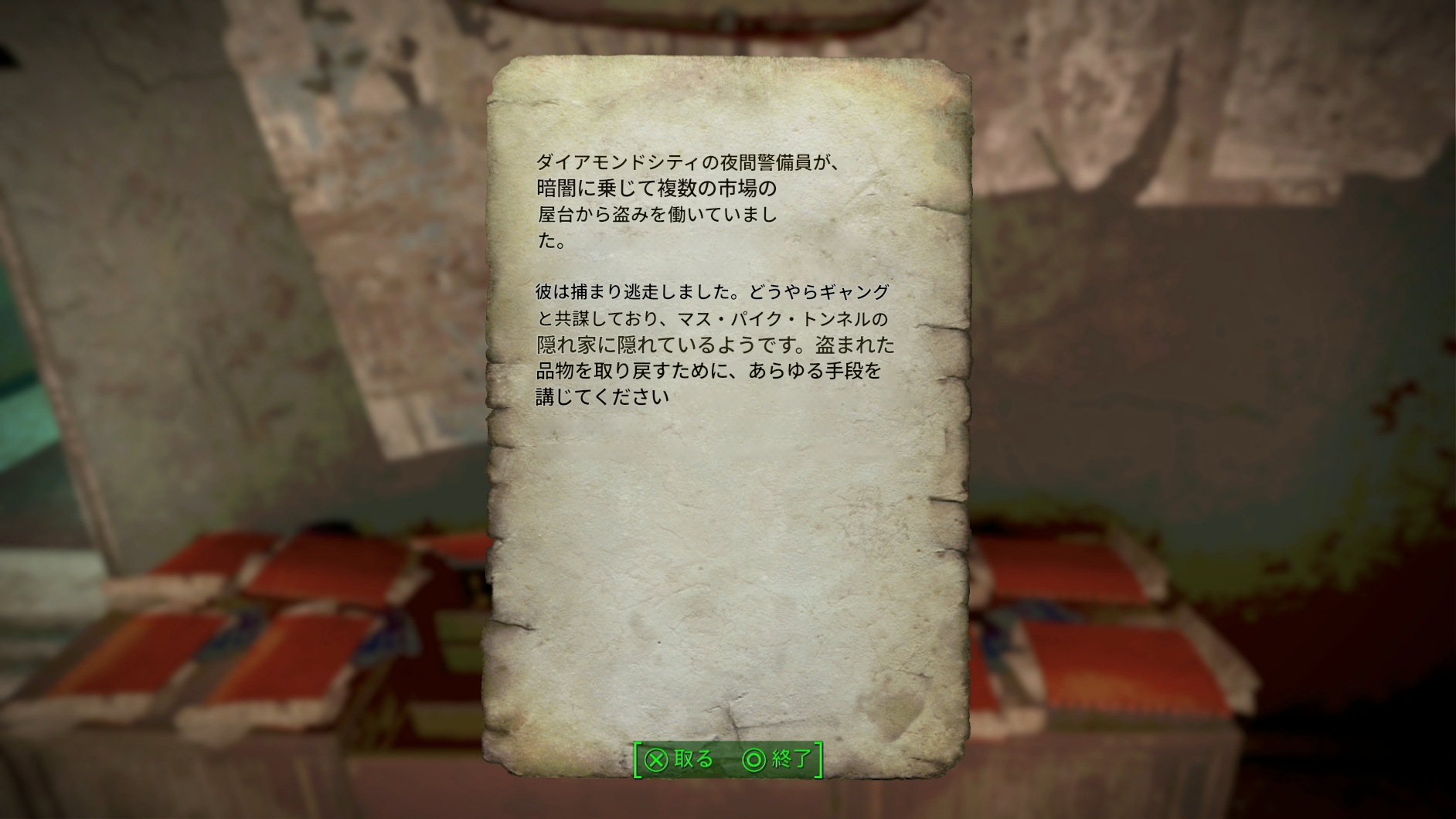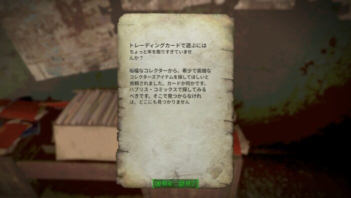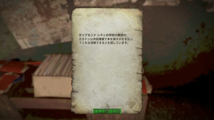現在はダイアモンドシティ・グッドネイバーの酒場でミッションを受けられる