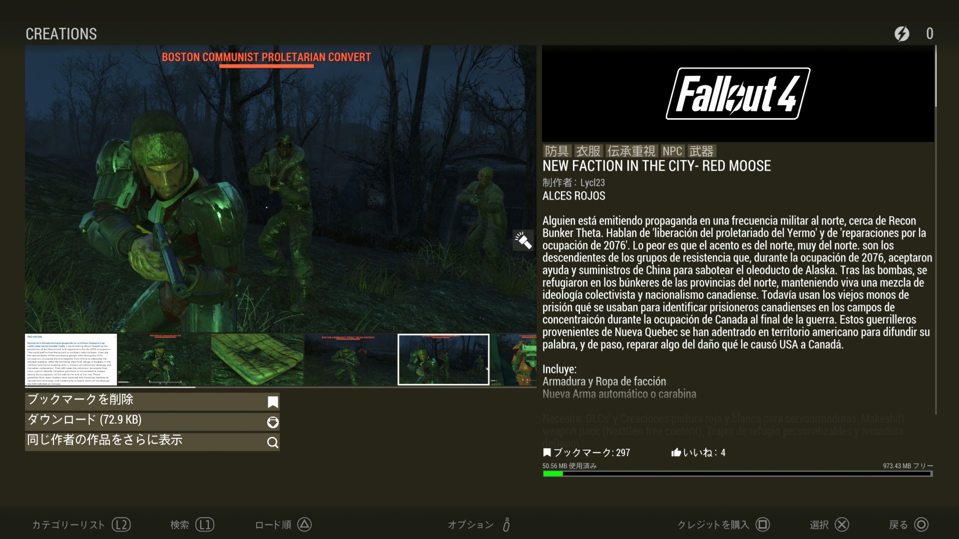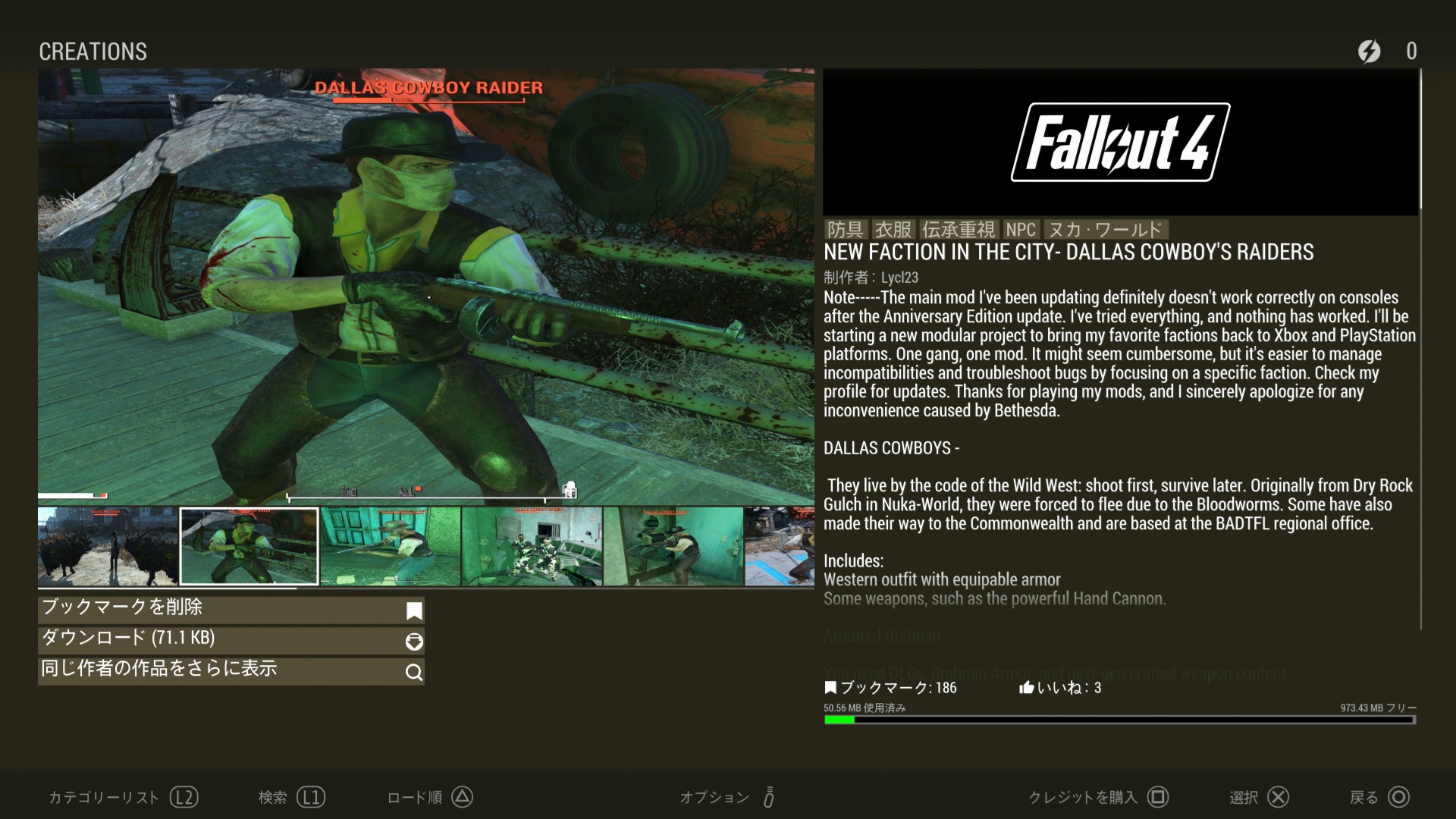 ※Creation「キャピタル・ウェイストランドの傭兵」「マンウェルライフルセット」(AE)が必要