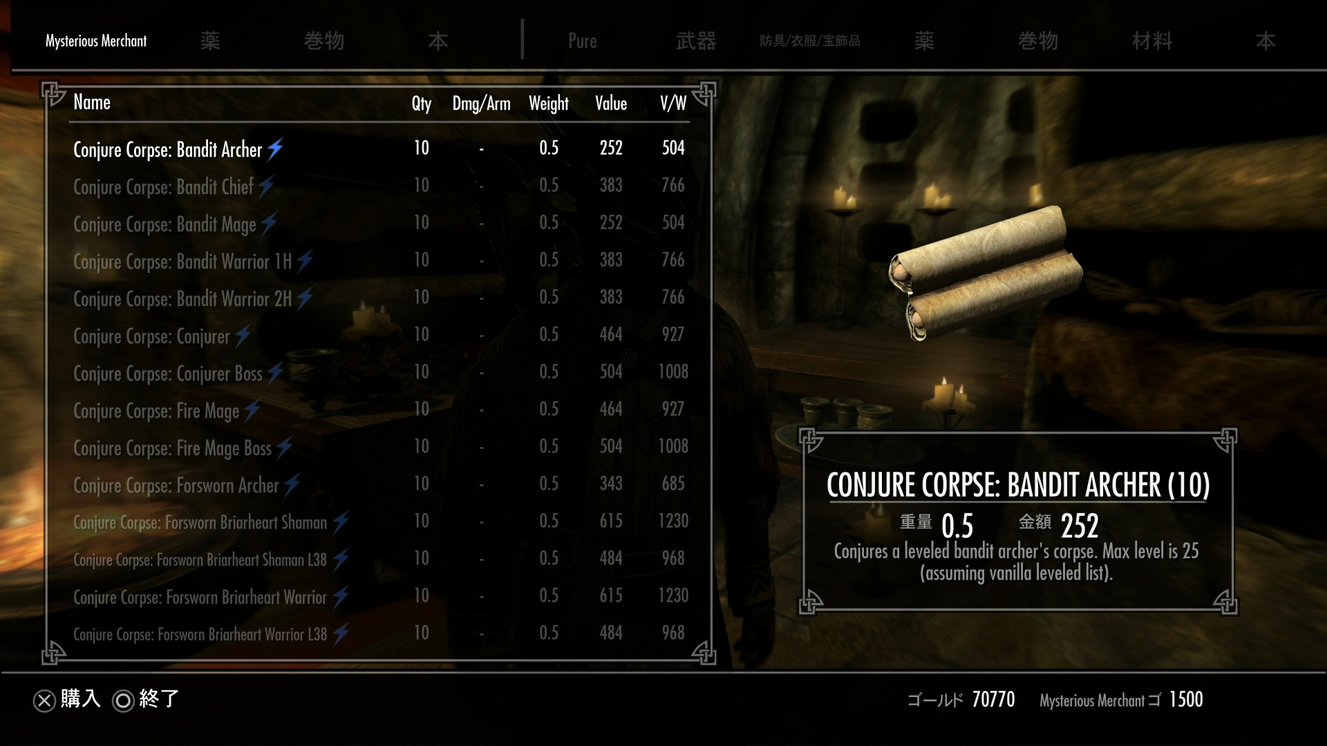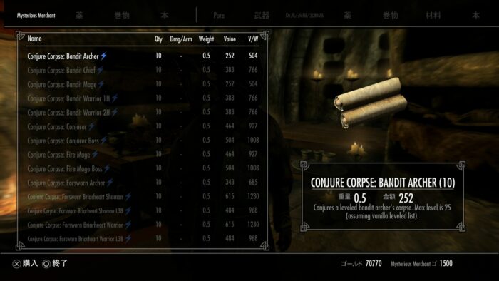 様々な死体召喚できる巻物と死の従徒、パワーが売っている。
