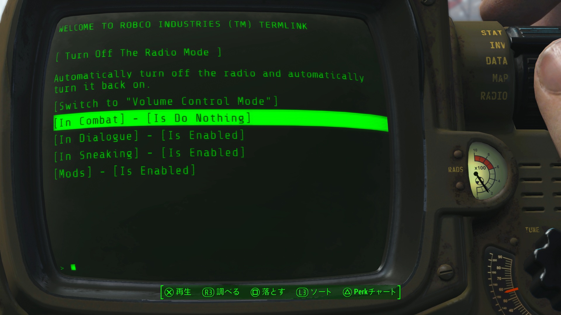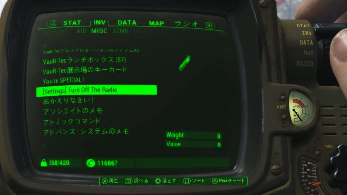 ラジオを戦闘・会話・ステルス中オフにする