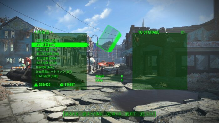 居住地以外だと中身空の”TO STORAGE”となる。アイテム入れてこれを閉じると↑STORAGEに送られるという設定のようだ。