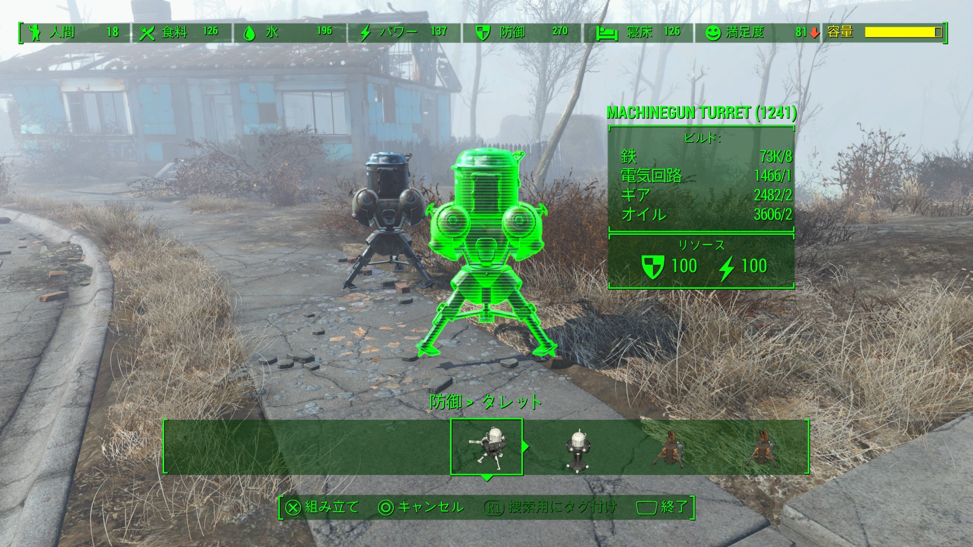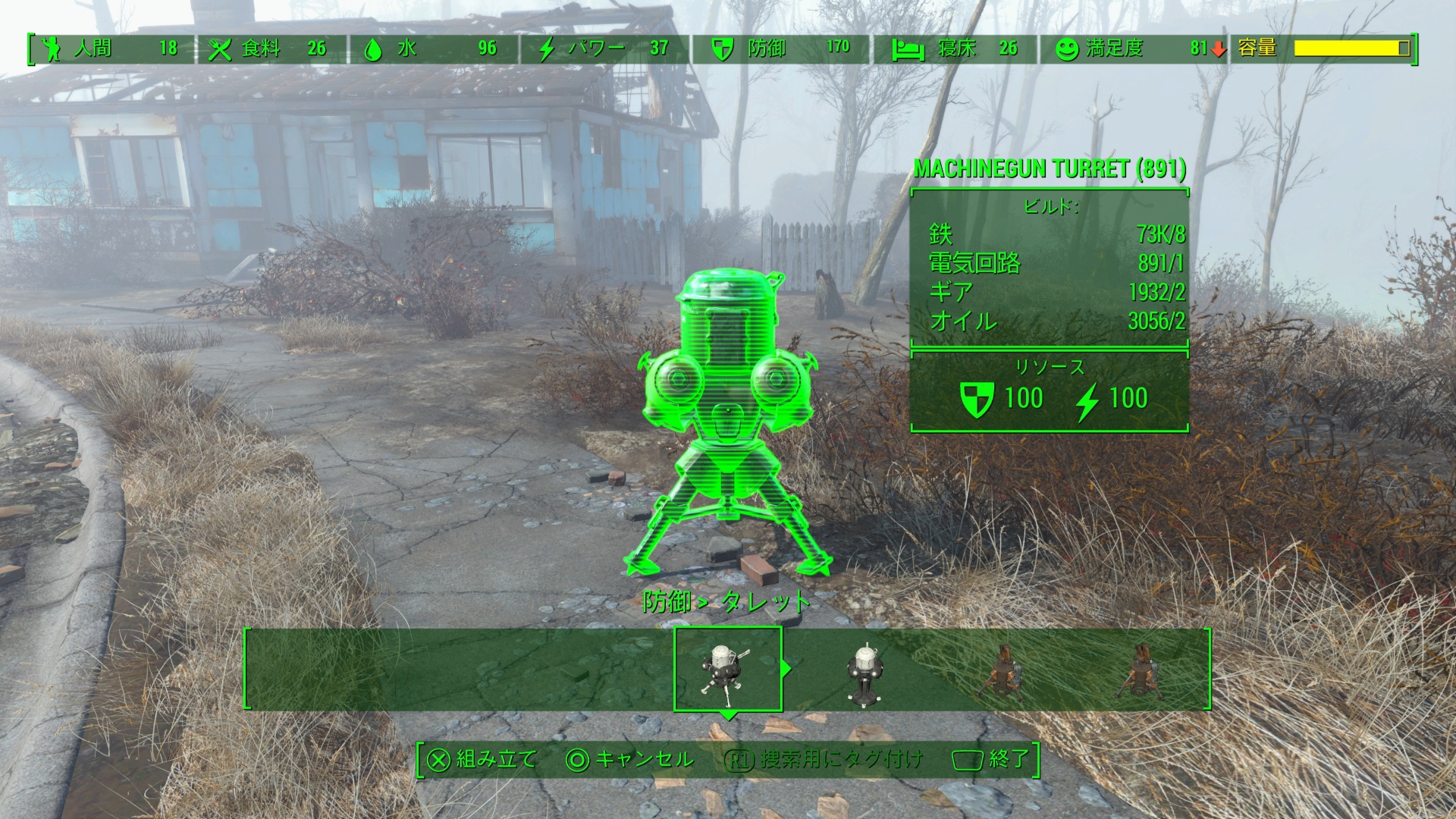 食料・水・パワー・防御・寝床・満足度