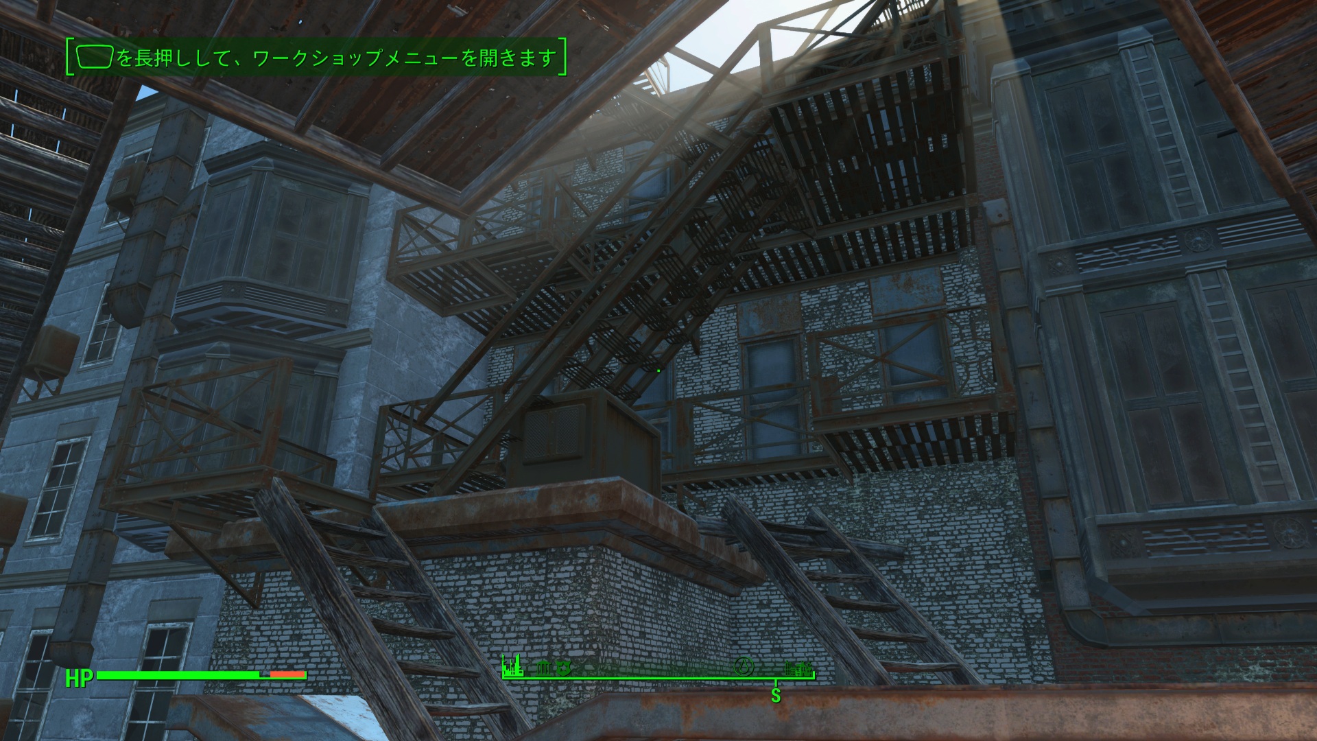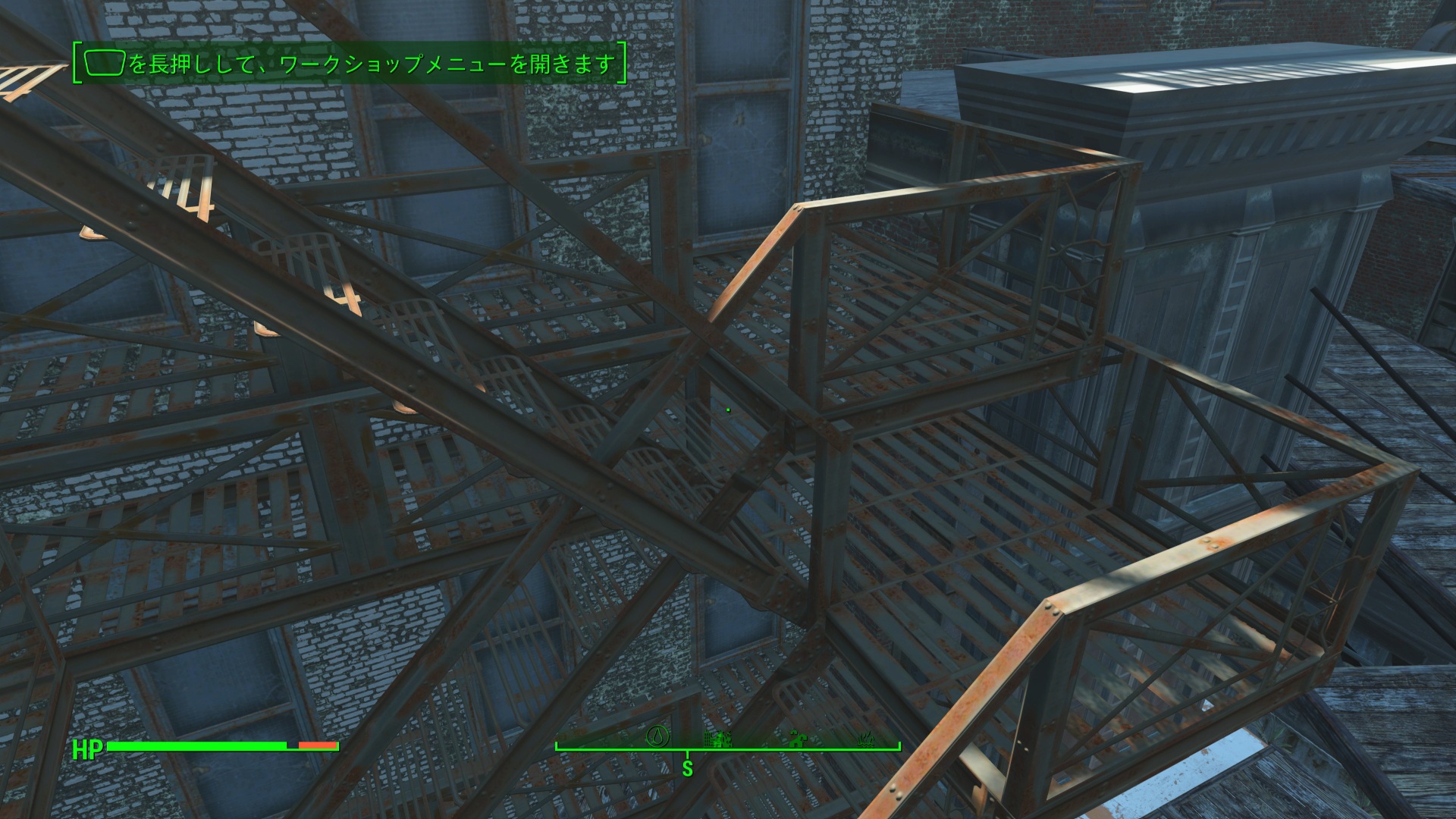 非常階段はこれかな?屋根伝っていくと階段があった。