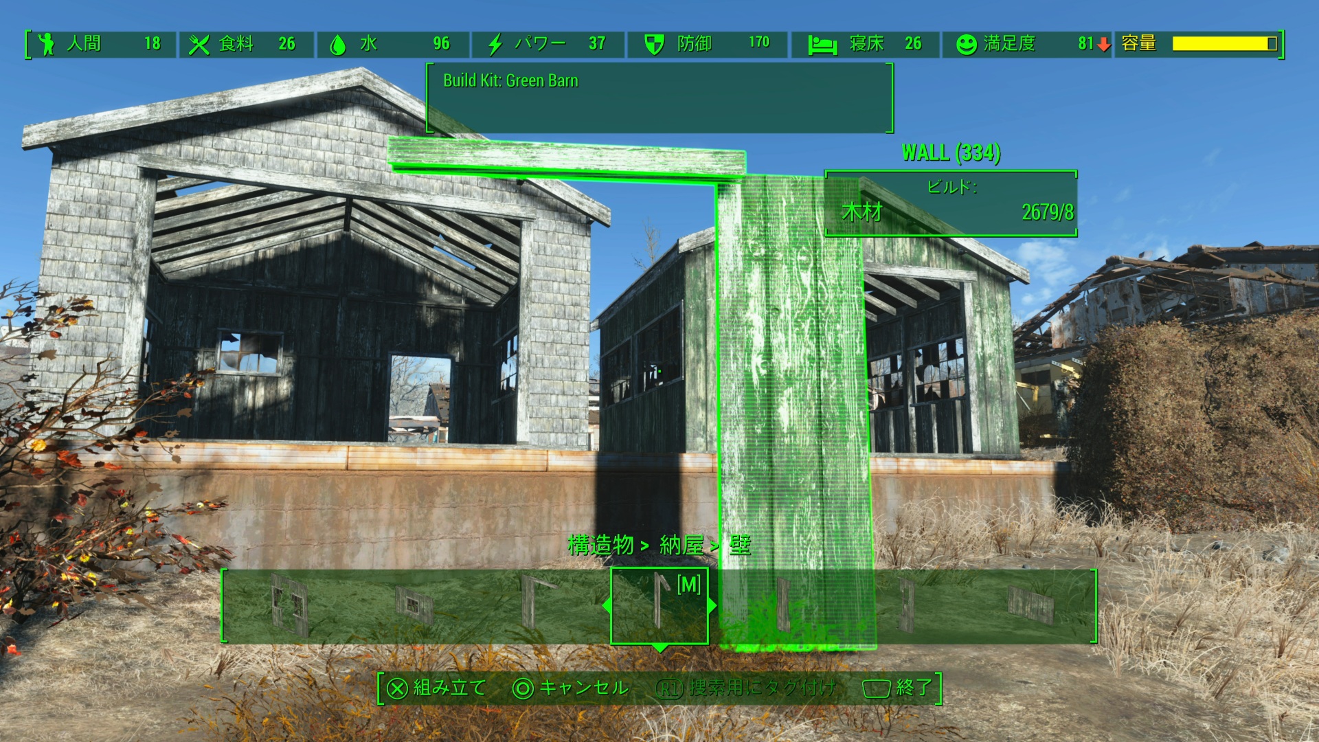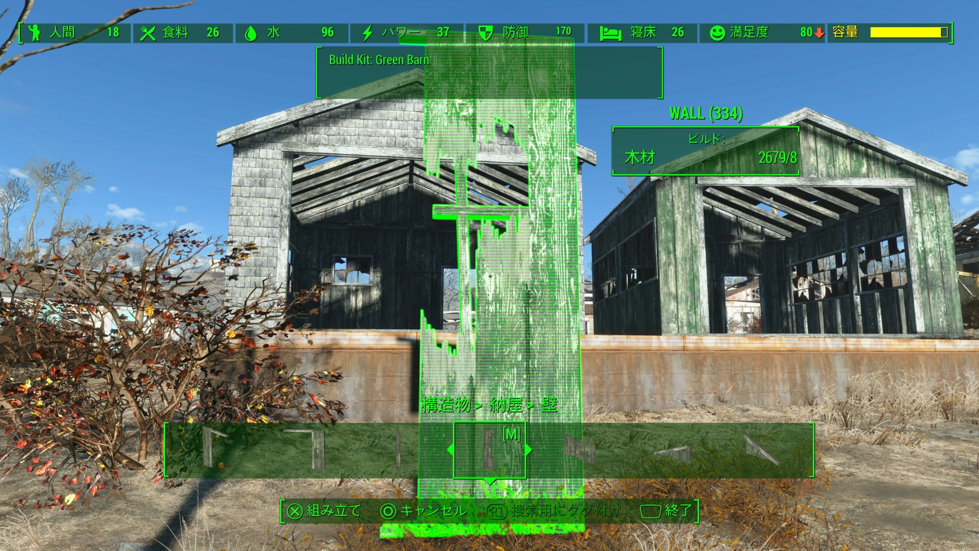 DLC「Far Harbor」で追加された納屋キットに様々なバリエーションを追加