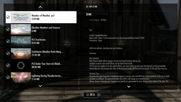 「天候系MODの組み合わせ、競合とかよくわからん!どうすればいいの!?」という私のような人向け!ロード順にリンクを貼ったPS5版7つを使ってみた。