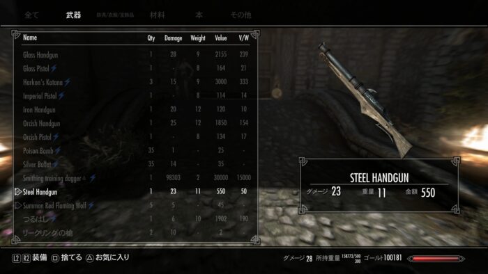 ただ、これは片手武器が背中装備になってしまう