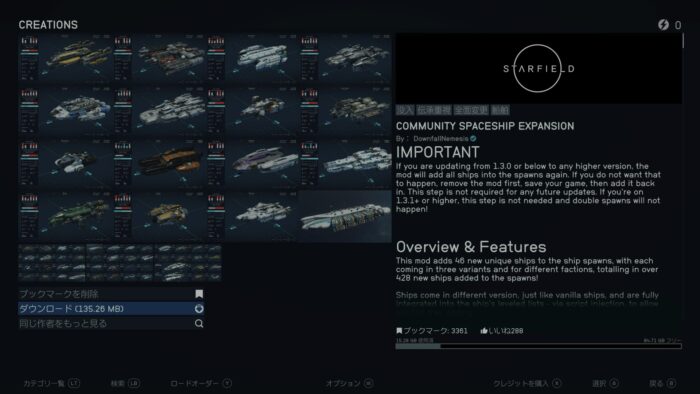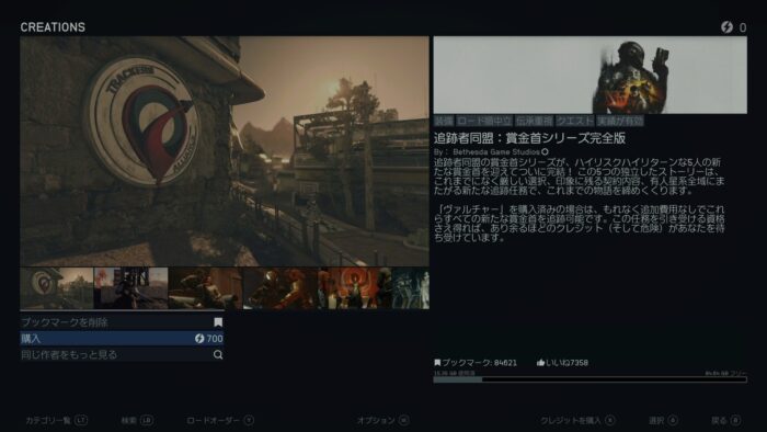 日本語に対応しているらしい。導入部分は既にゲームに含まれている。その賞金首の続き。すごく人気が高く好評。Starfield(デラックスかな?)購入時に付いているクレジットを使うならこれが無難か?