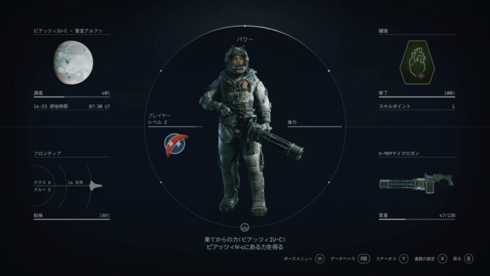 ニューゲーム時のオープニングがスキップされて、開始地点・装備・コンステレーションどうするかを選択して始まる