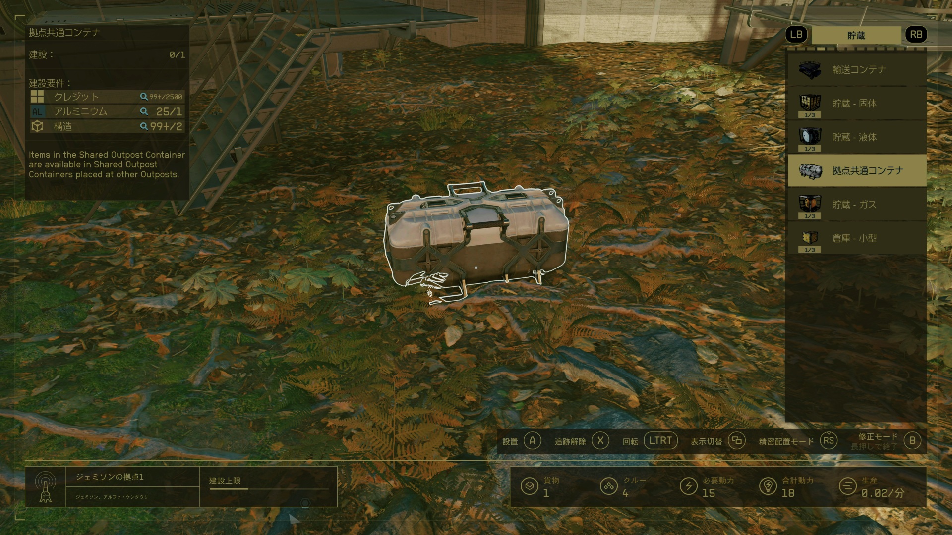 拠点の共有コンテナのスキル条件を削除、素材と5000クレジットで作れる