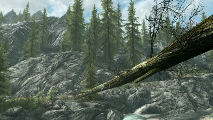 2番めはもう目の前の倒木しか見えん。3番目がよくわかるかな。岩が追加されてたり木の数、位置の調整が行われているようだ。