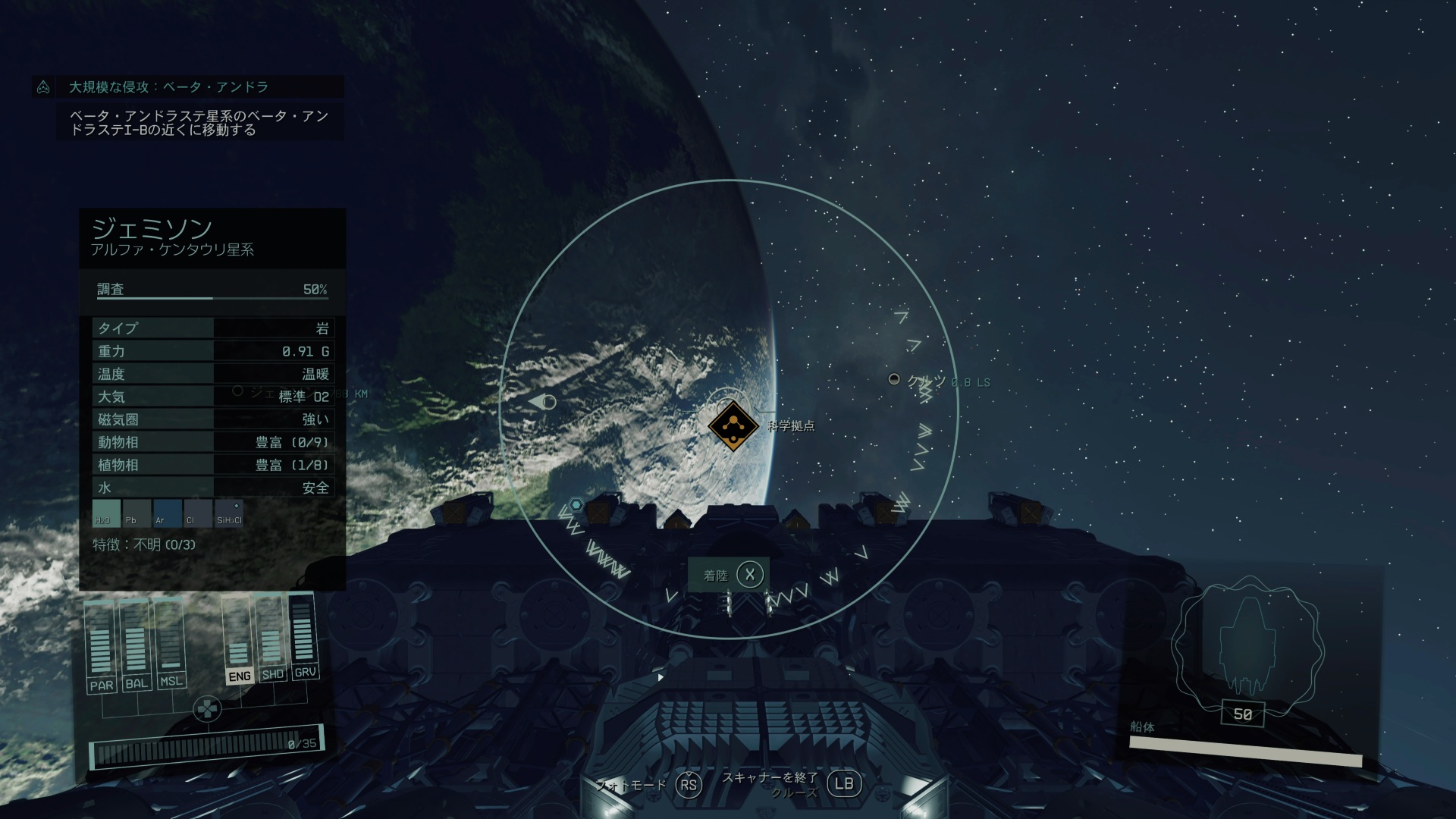 その宇宙から着陸する時、スキャンして着陸を選ばないといけない。