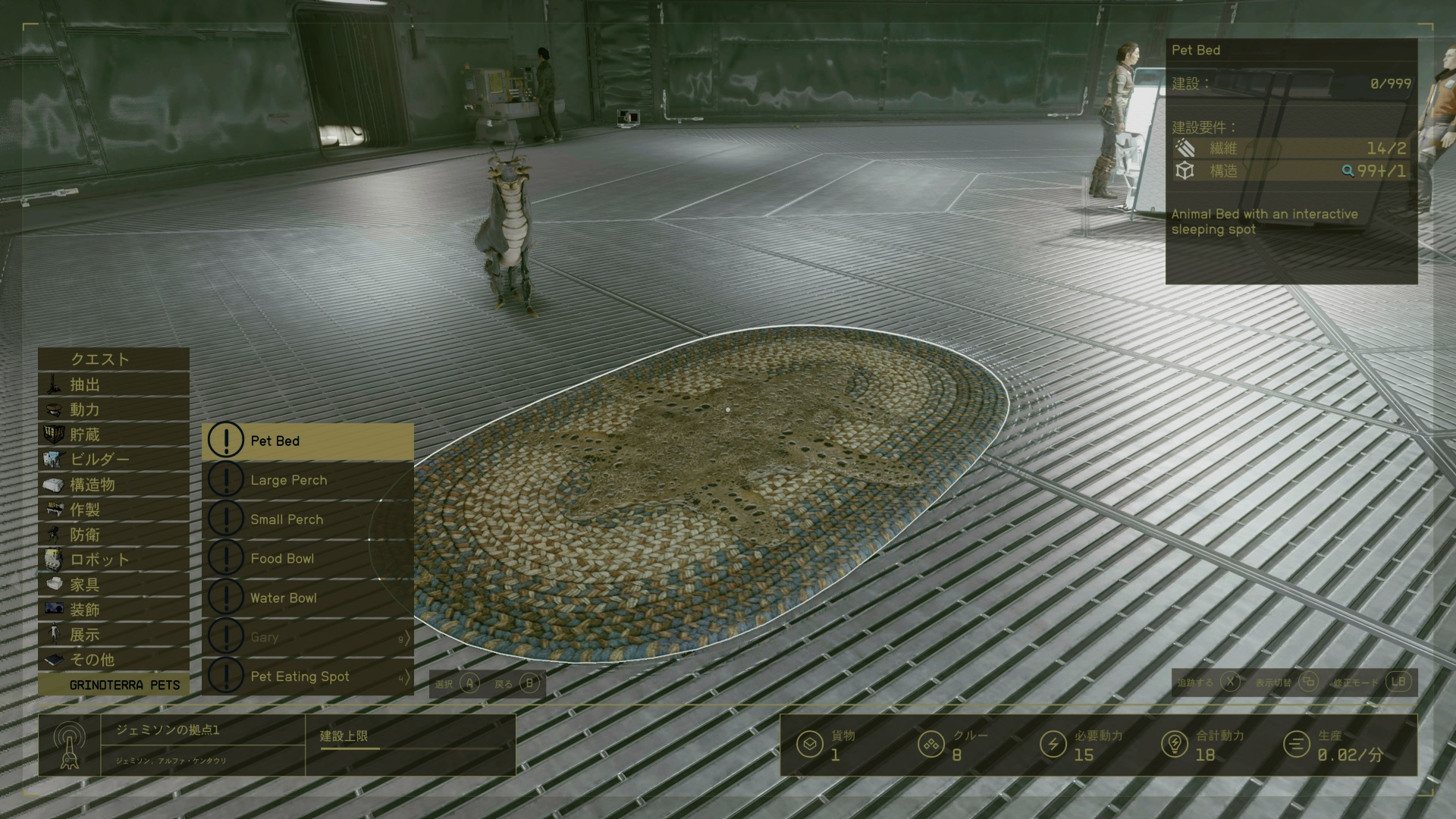 設置可能なインタラクティブマーカー4種類(睡眠、食事、水浴び、日光浴)