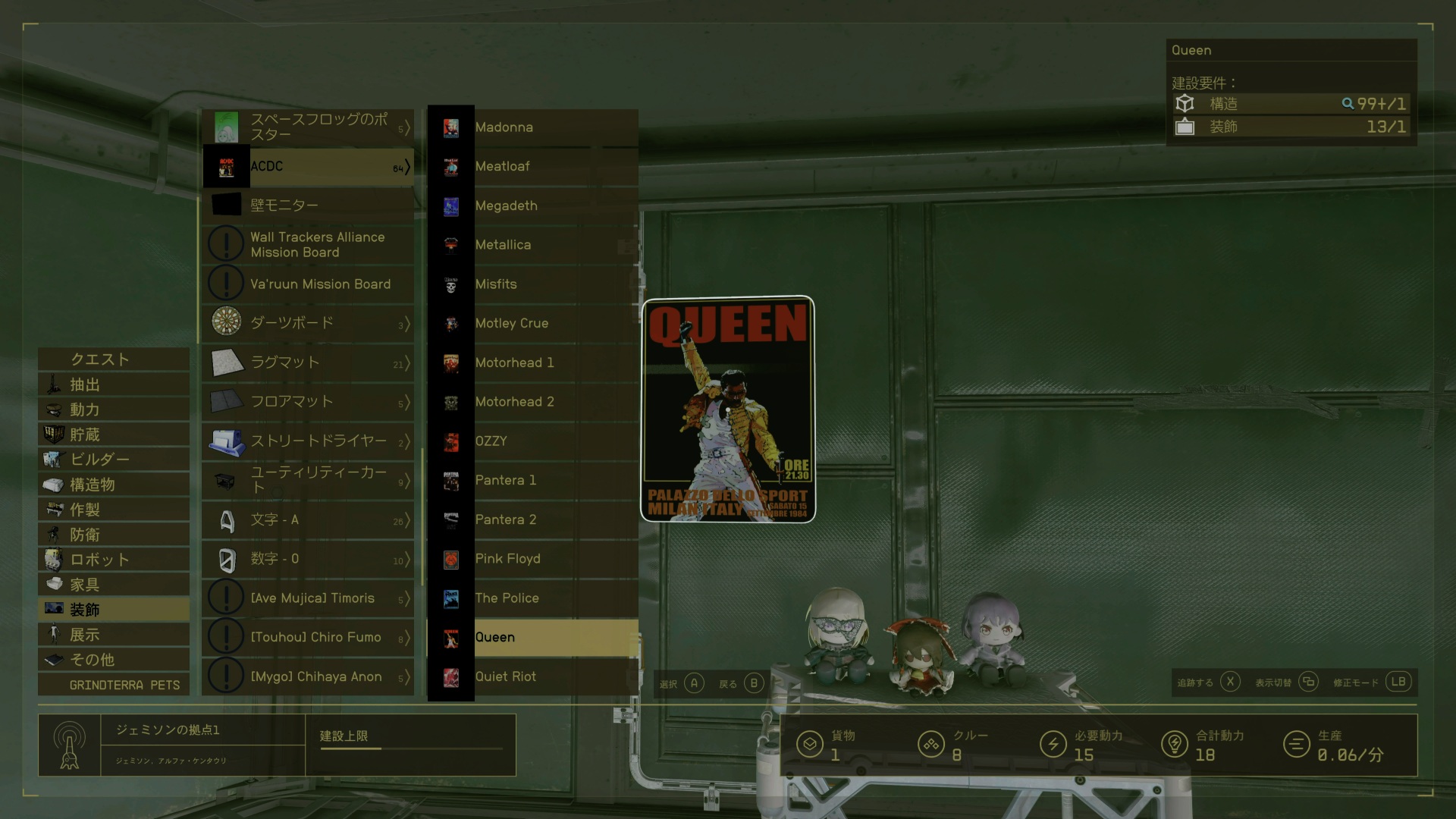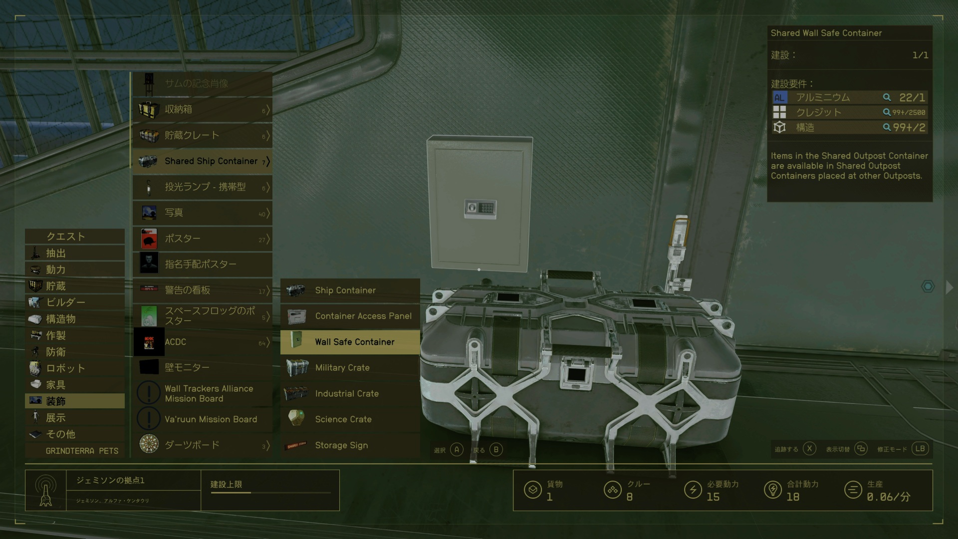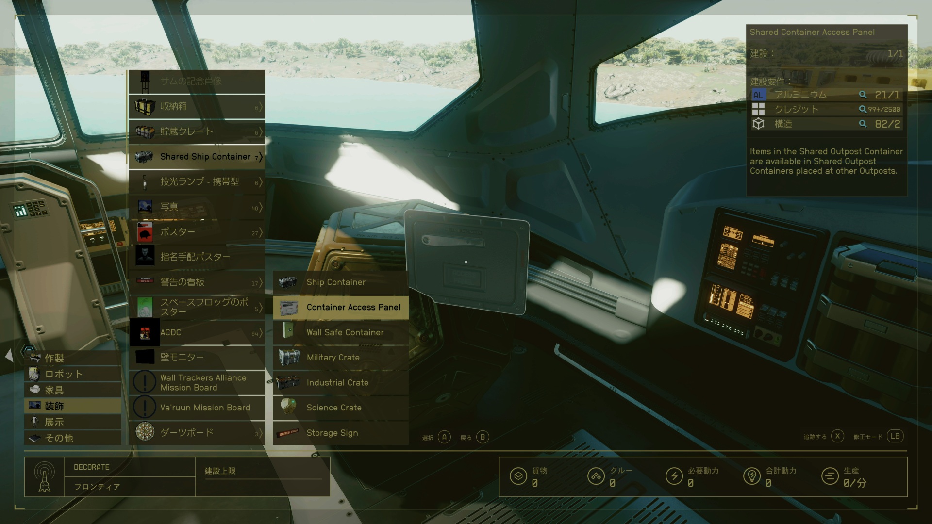 装飾にある。1つの拠点・宇宙船に1つしか作れないようだ。