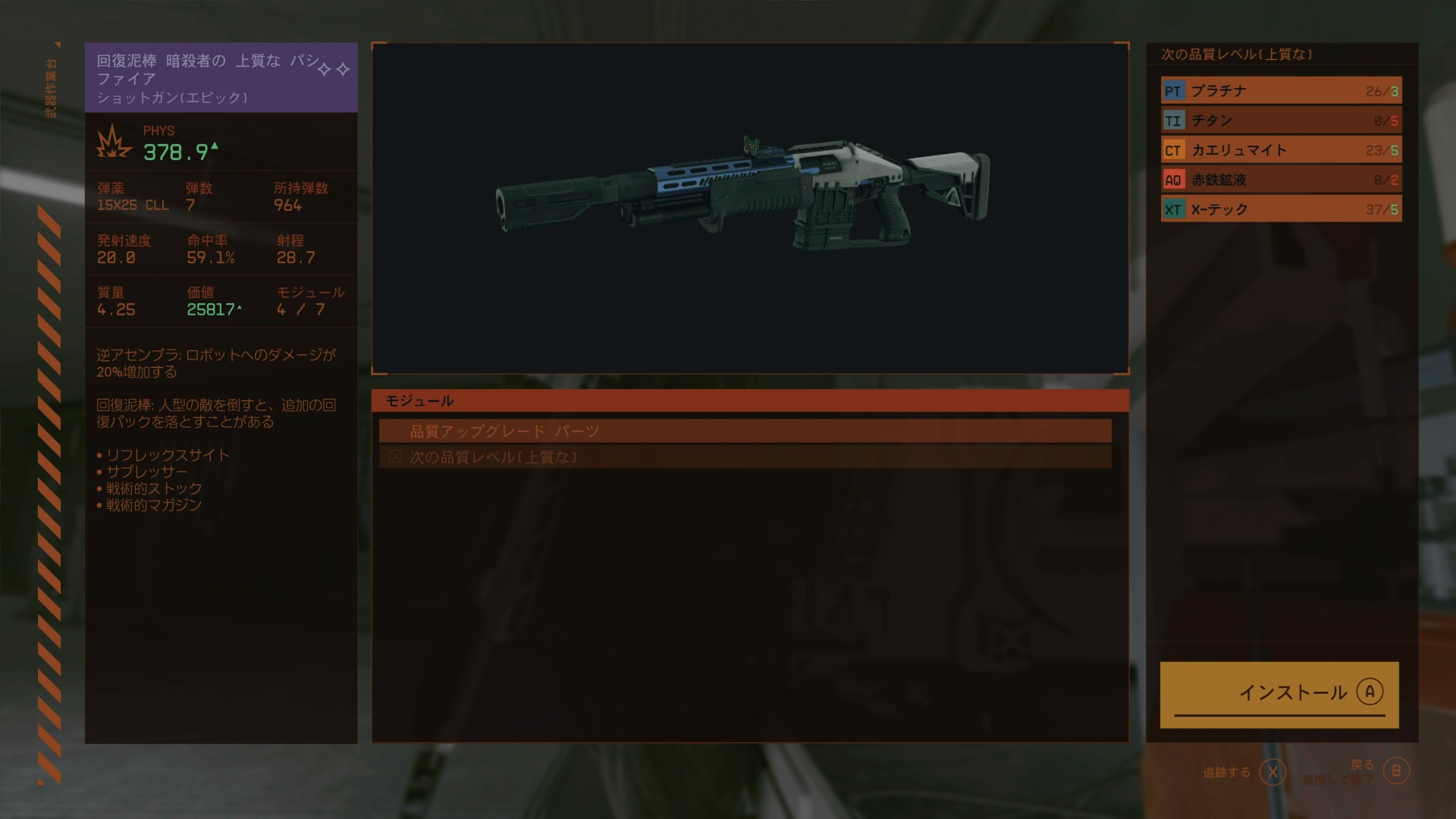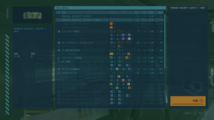 前回紹介したものは単にお金不要、X-テックのみになるものだった。今回はお金の代わりに資源が必要となるもの。素材の使い道が増えて良いかもしれない。